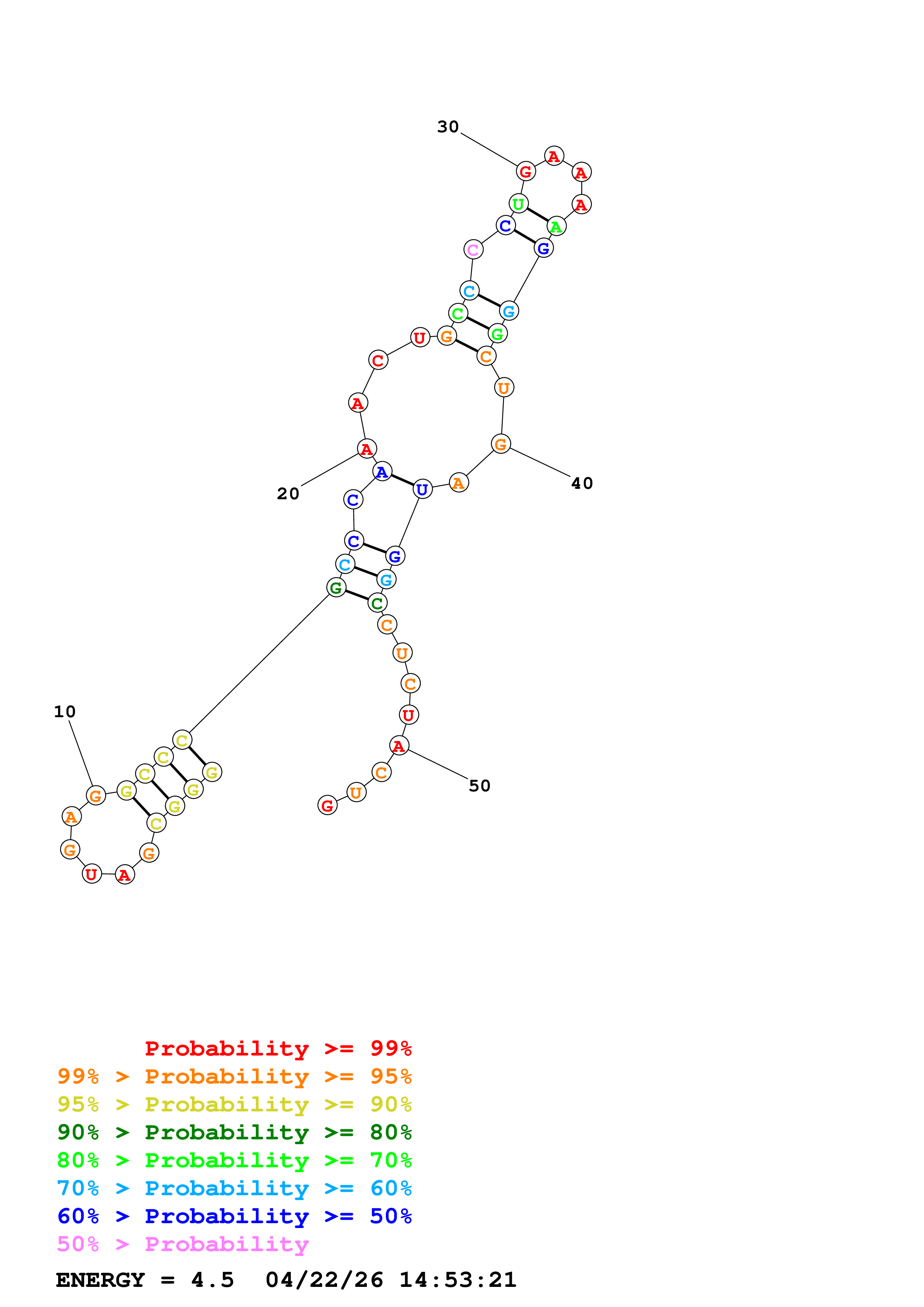 (Generate a structure or structures composed of highly probable base pairs. This is an alternative method for structure prediction that may have higher fidelity in structure prediction.)