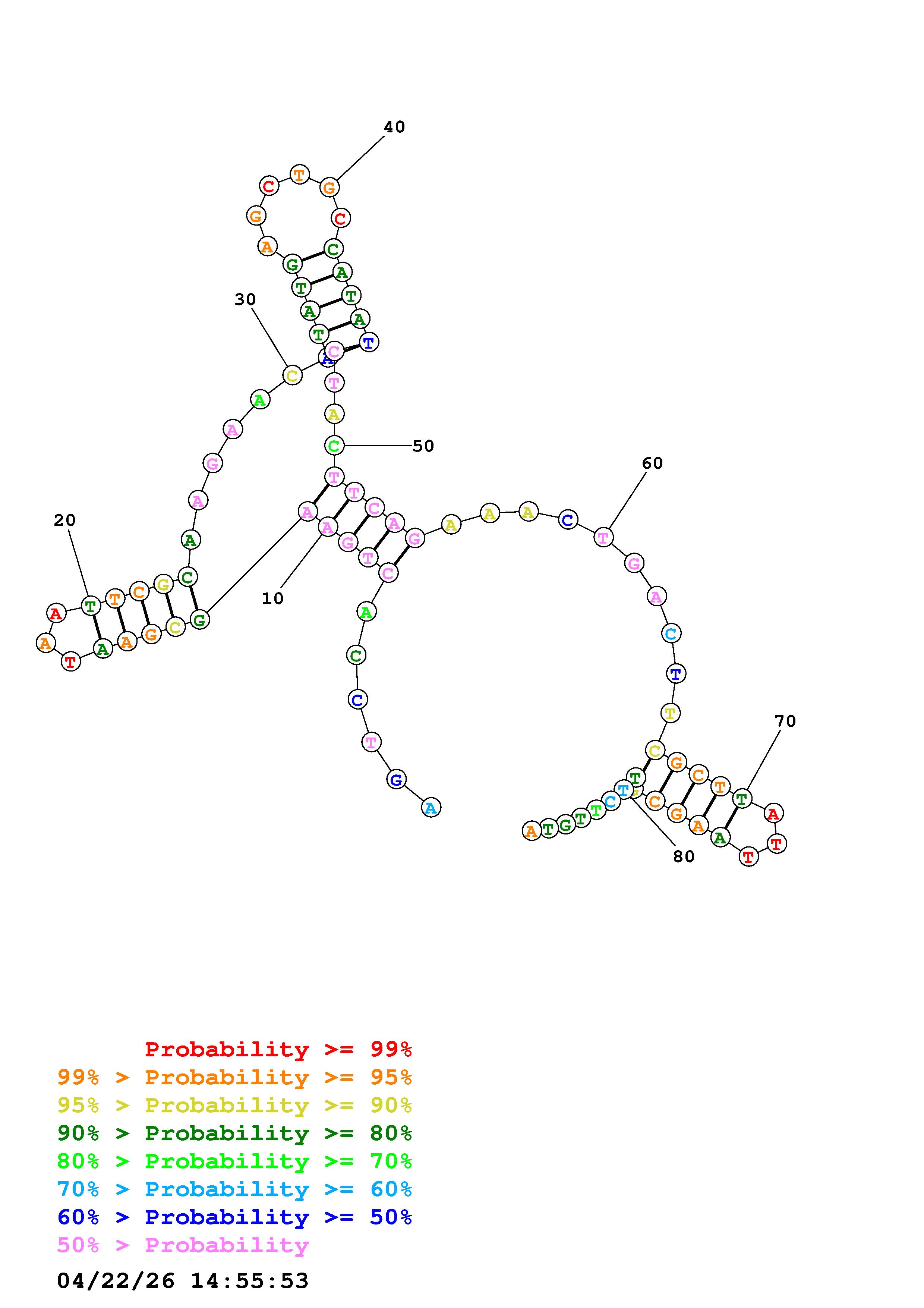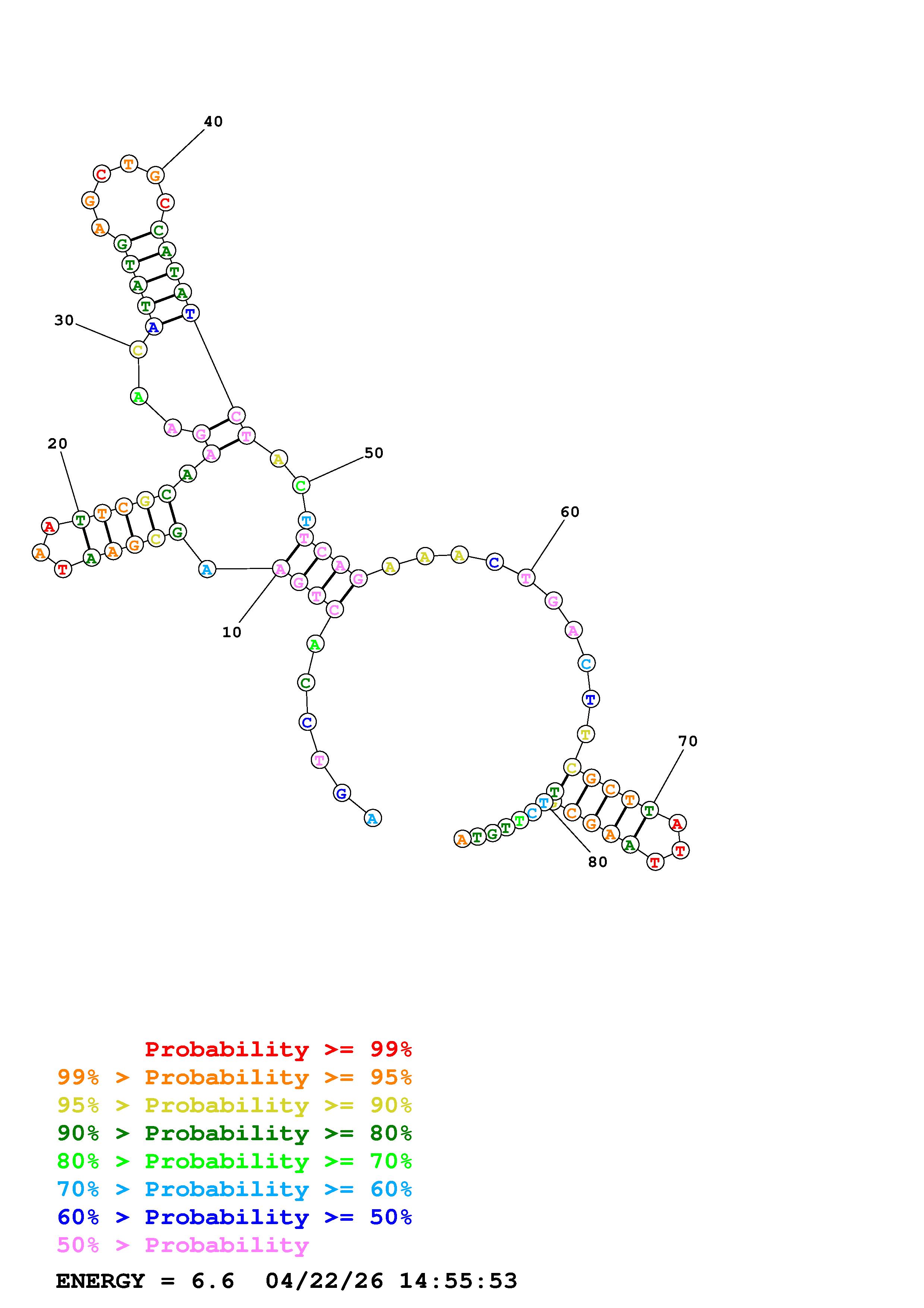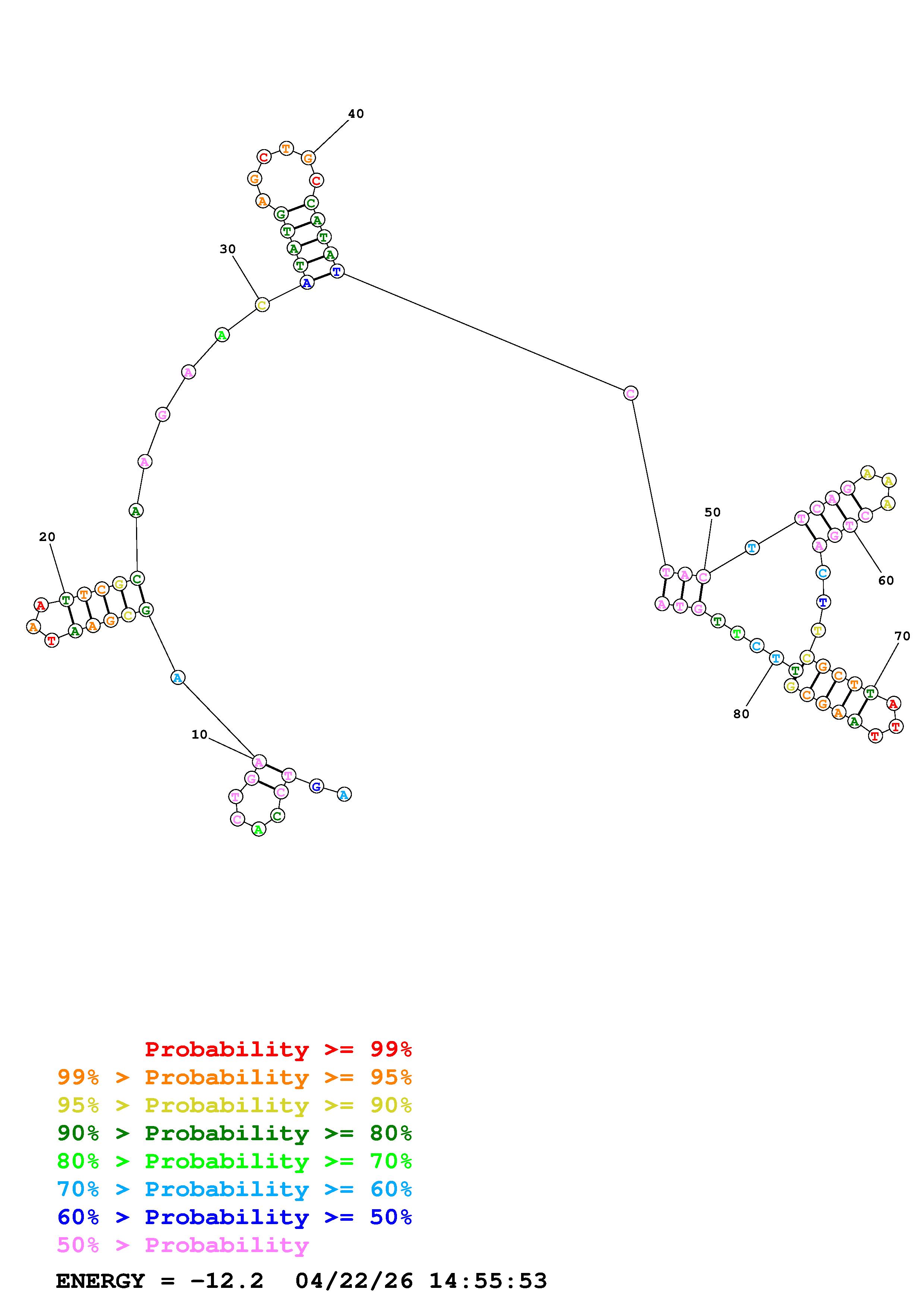 Fold Predict1.fasta Fold.ct --DNA --loop 30 --maximum 20 --percent 10 --temperature 310.15 --window 3