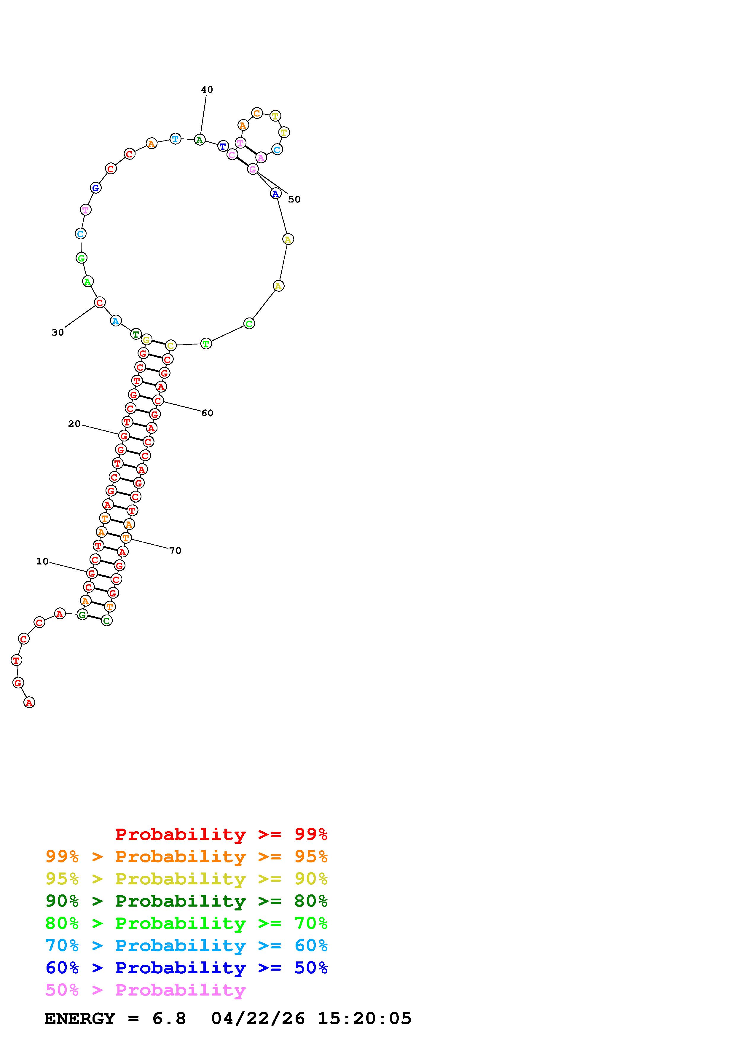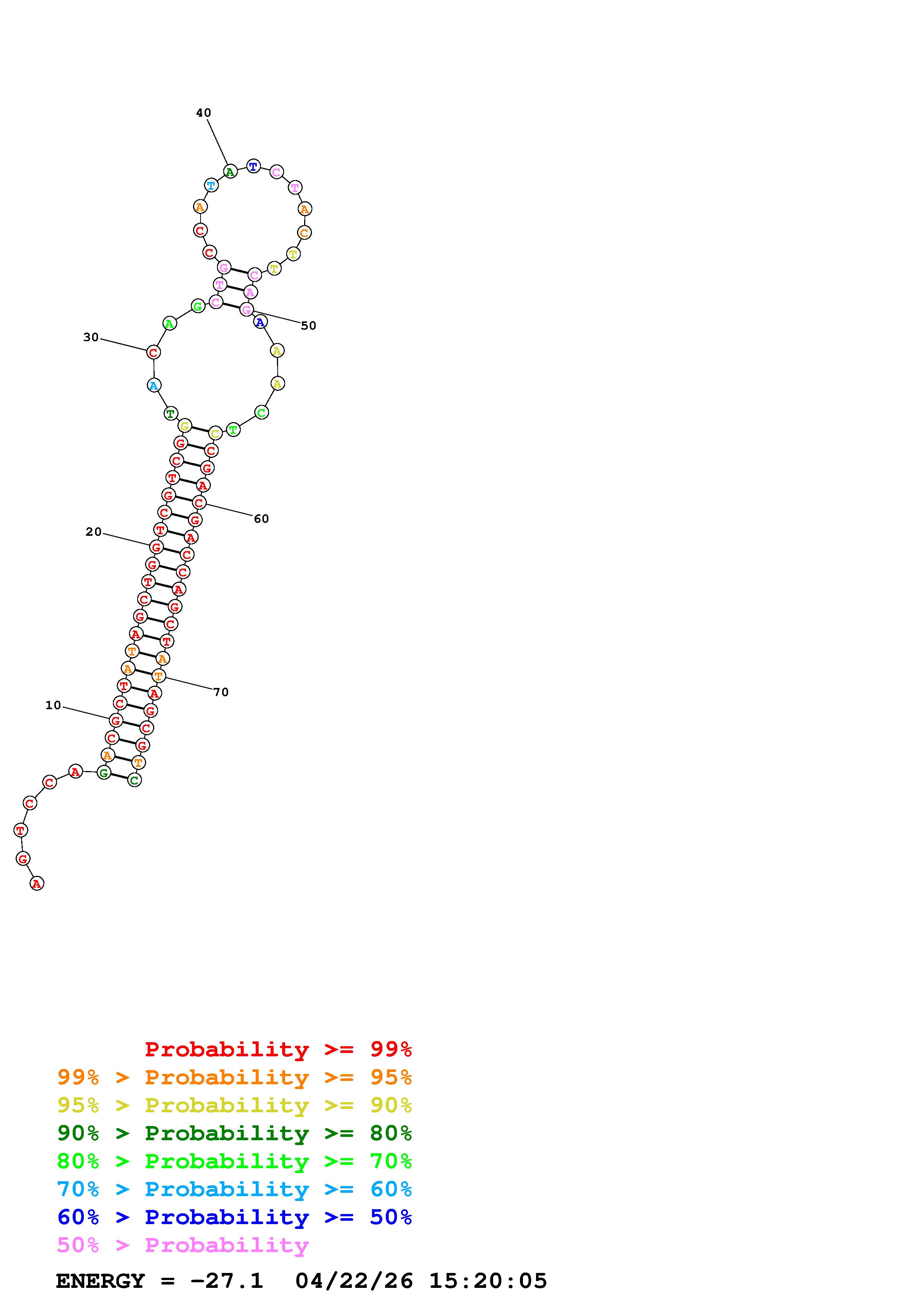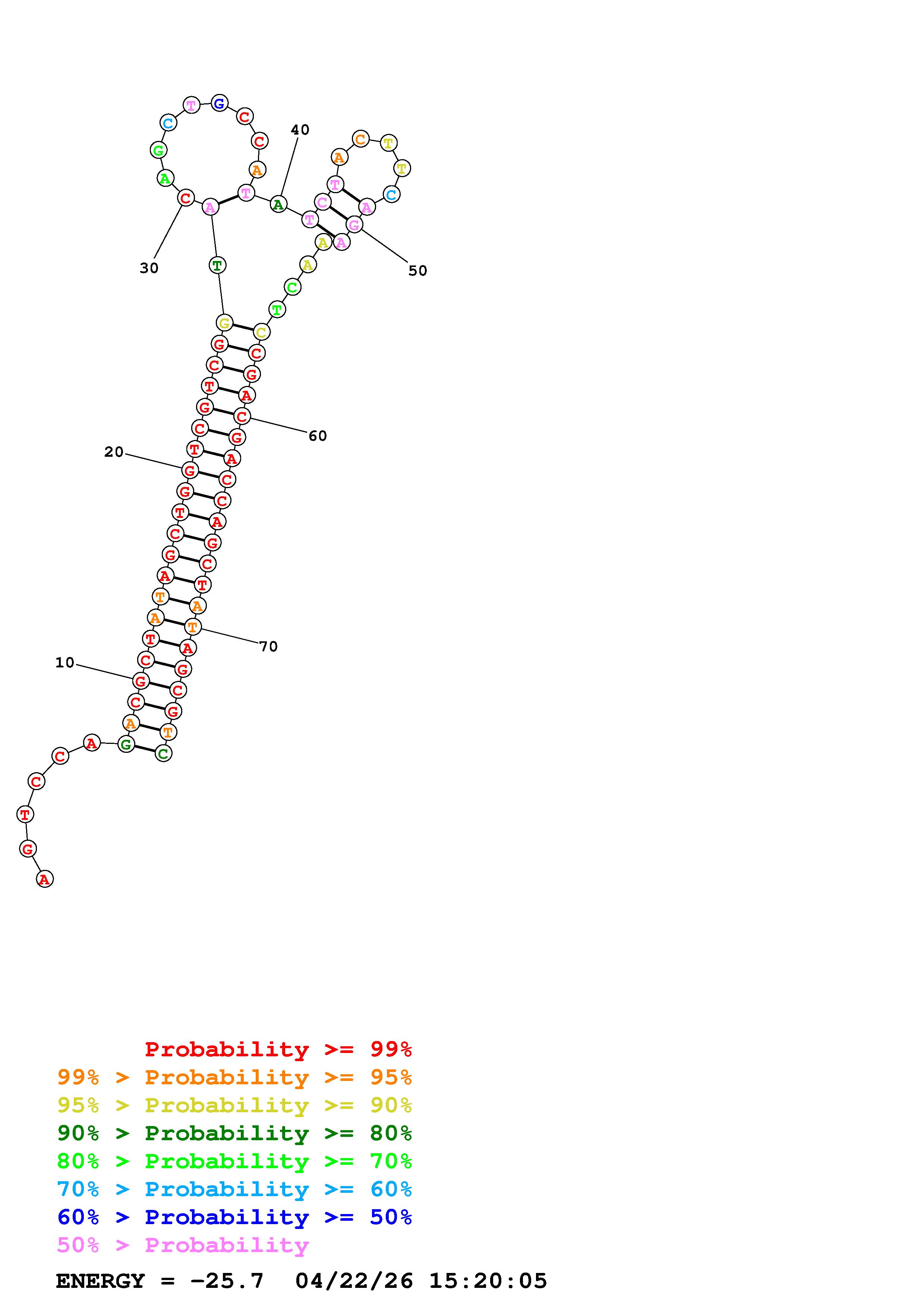 Fold Predict1.fasta Fold.ct --DNA --loop 30 --maximum 20 --percent 10 --temperature 310.15 --window 3