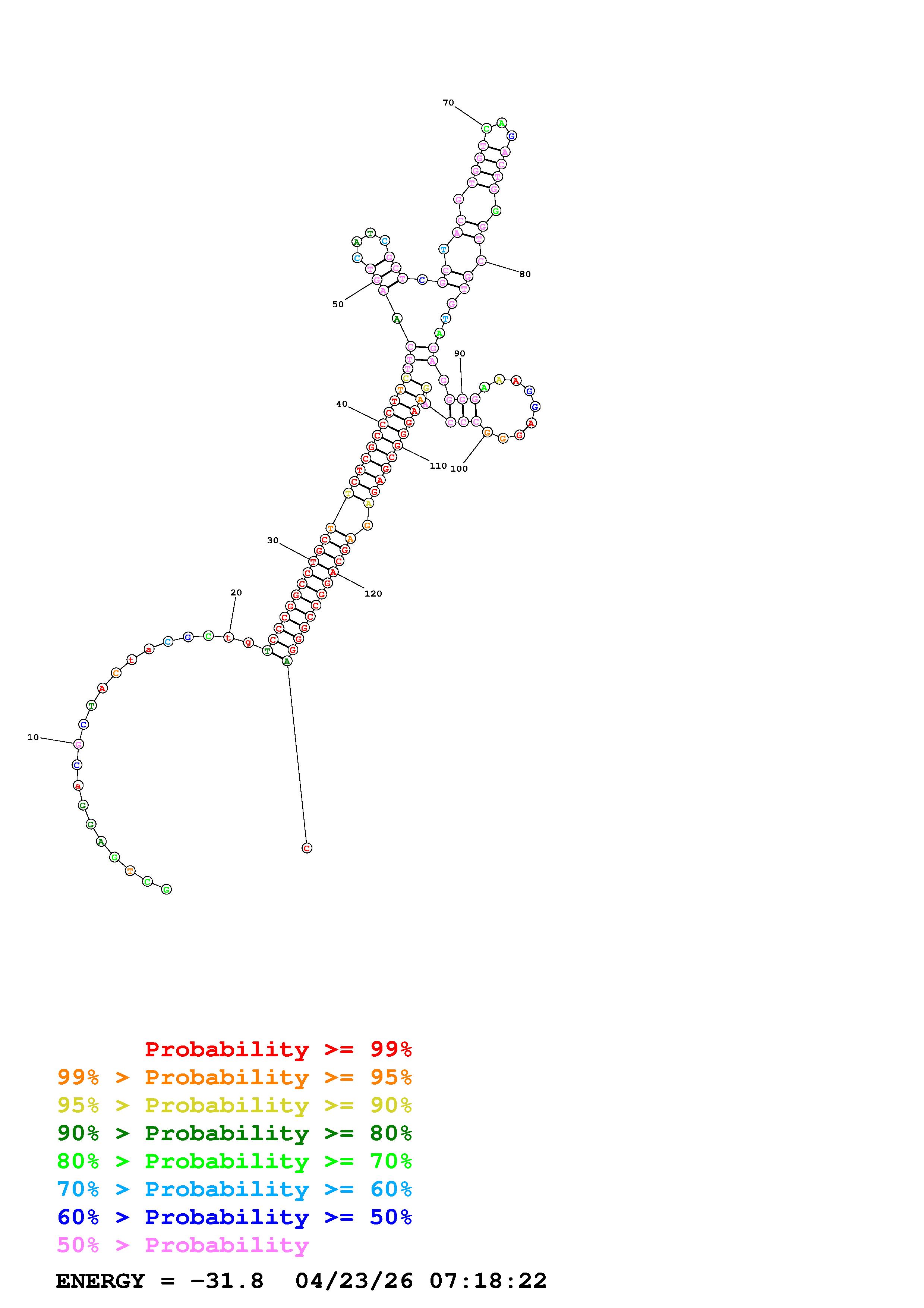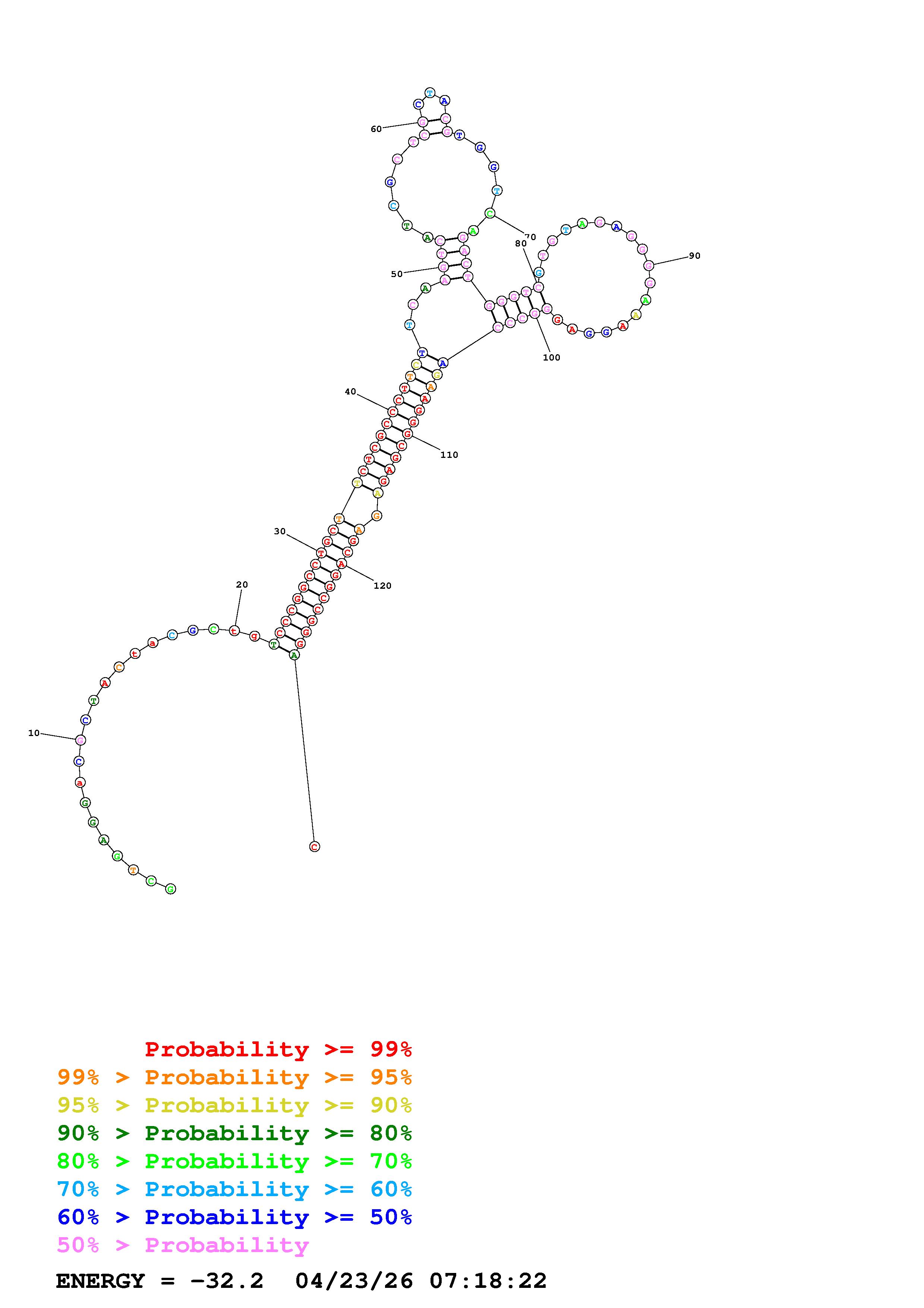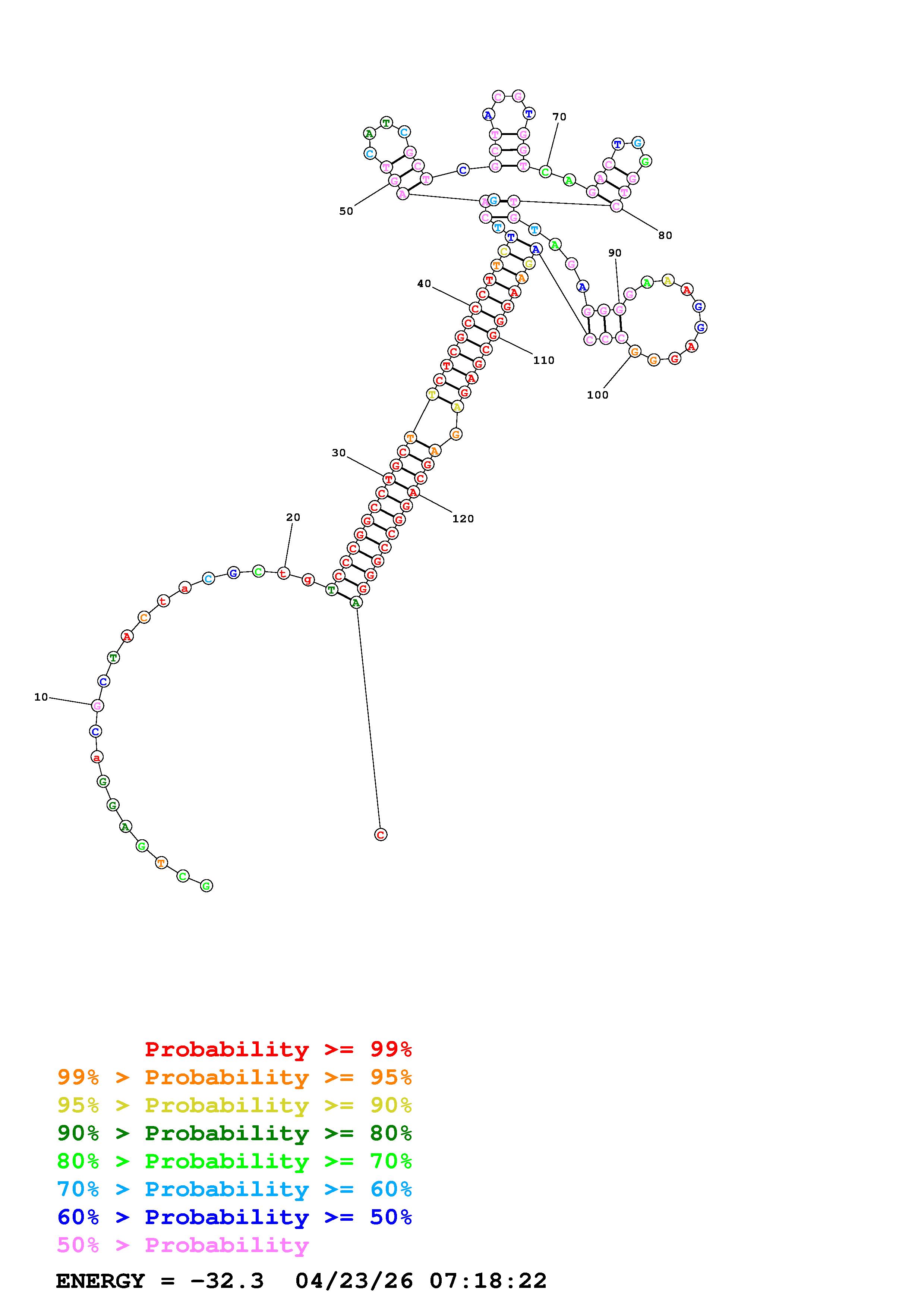 Fold Predict1.fasta Fold.ct --DNA --loop 30 --maximum 20 --percent 10 --temperature 310.15 --window 3