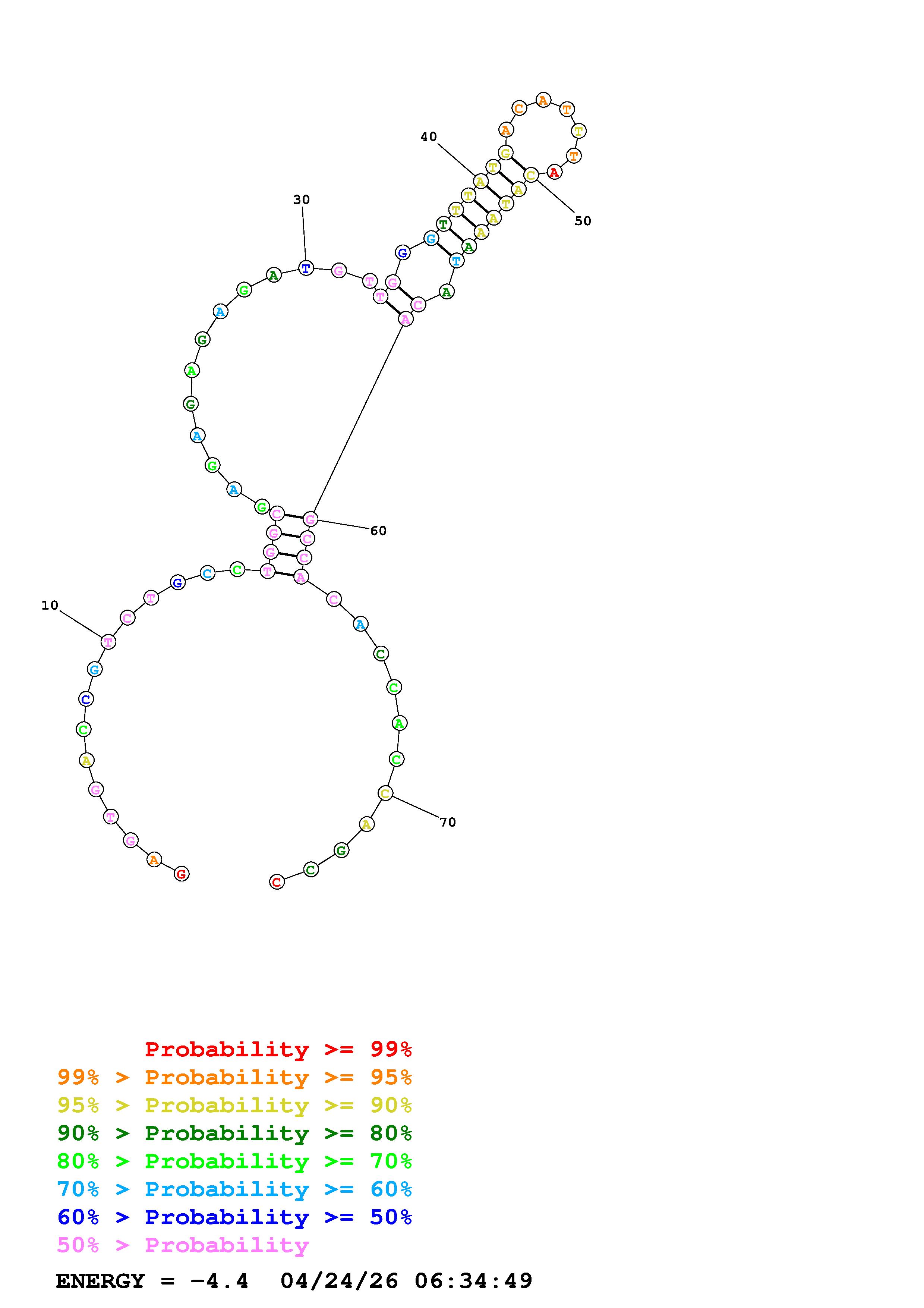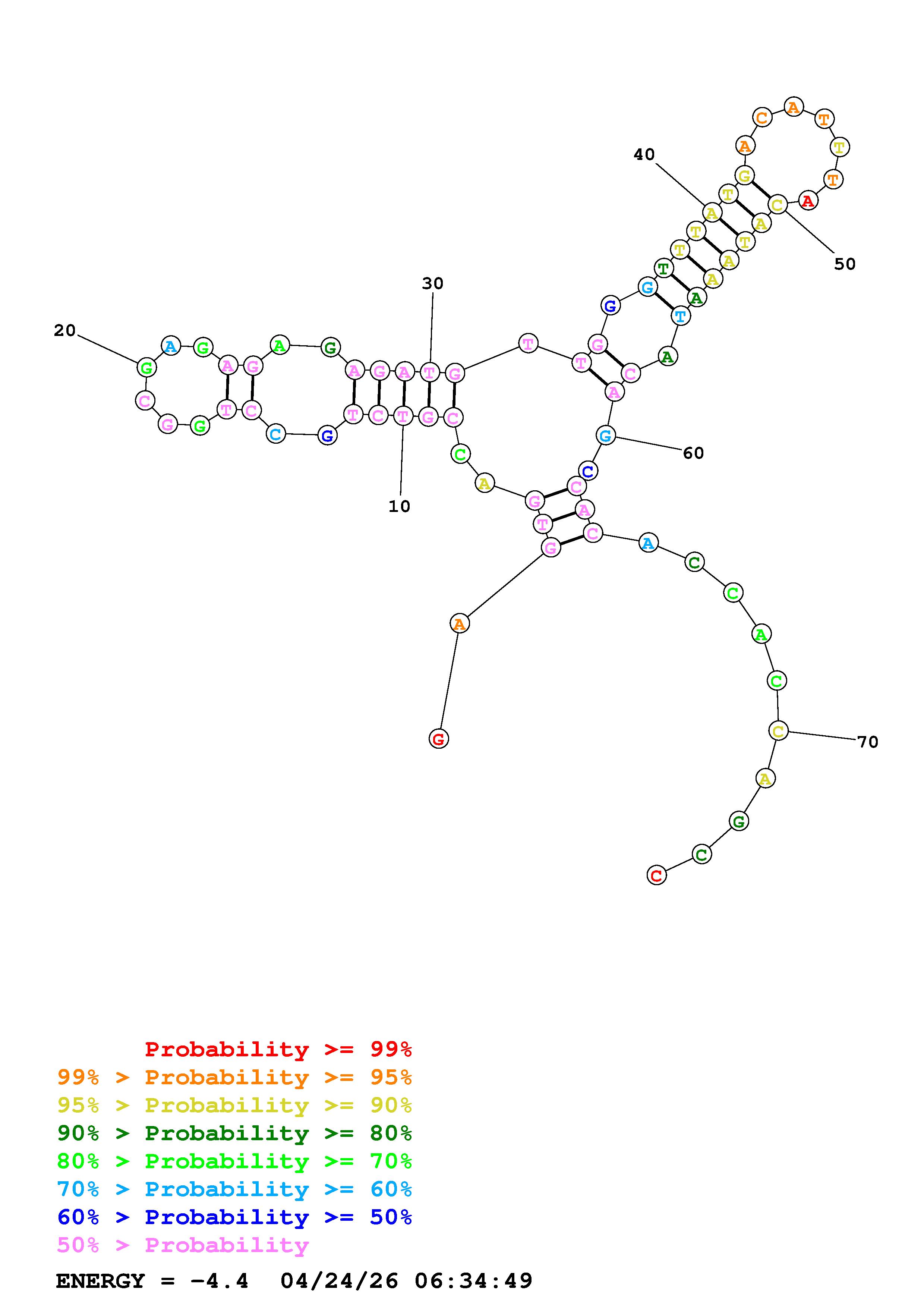 Fold Predict1.fasta Fold.ct --DNA --loop 30 --maximum 20 --percent 10 --temperature 310.15 --window 3