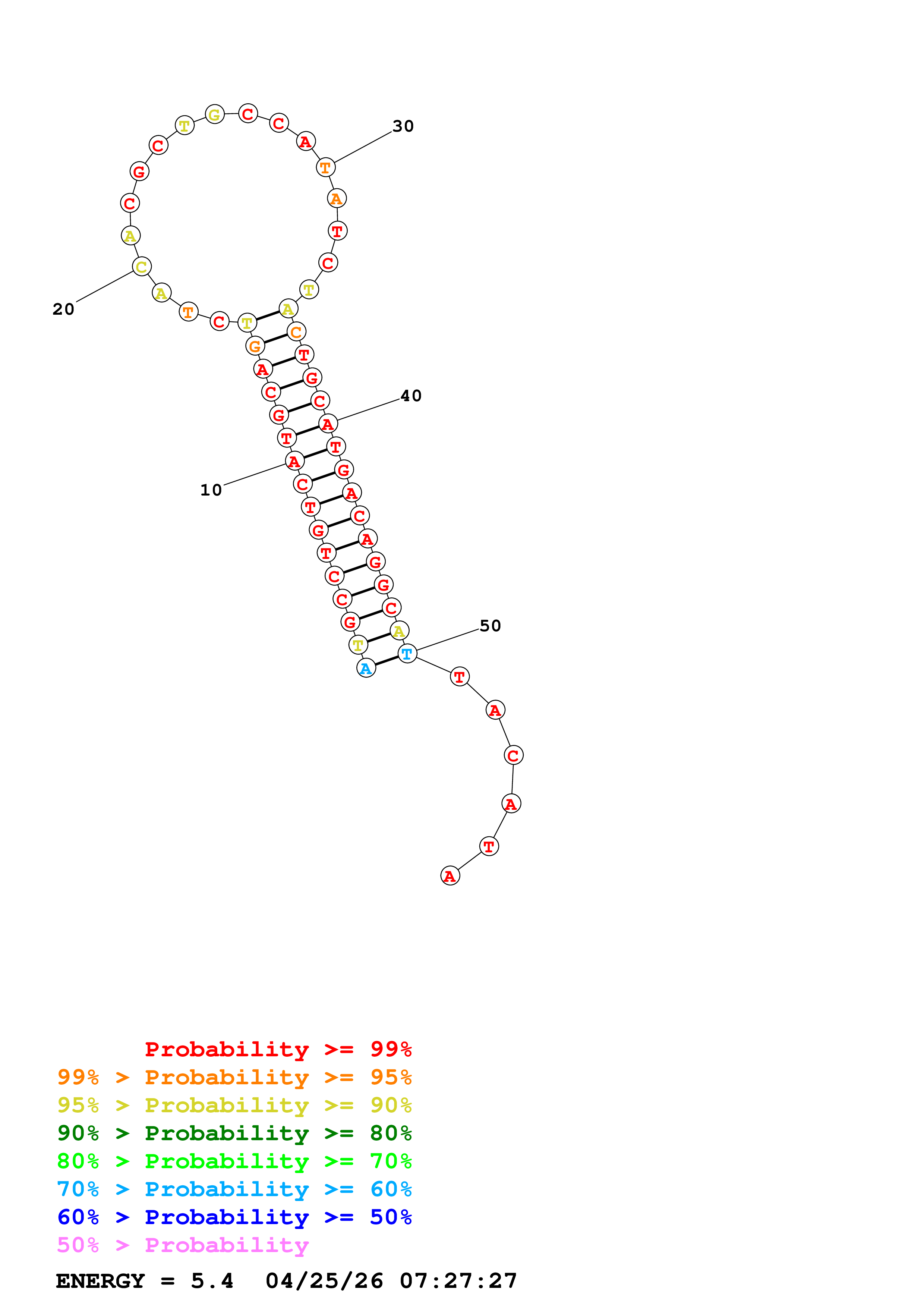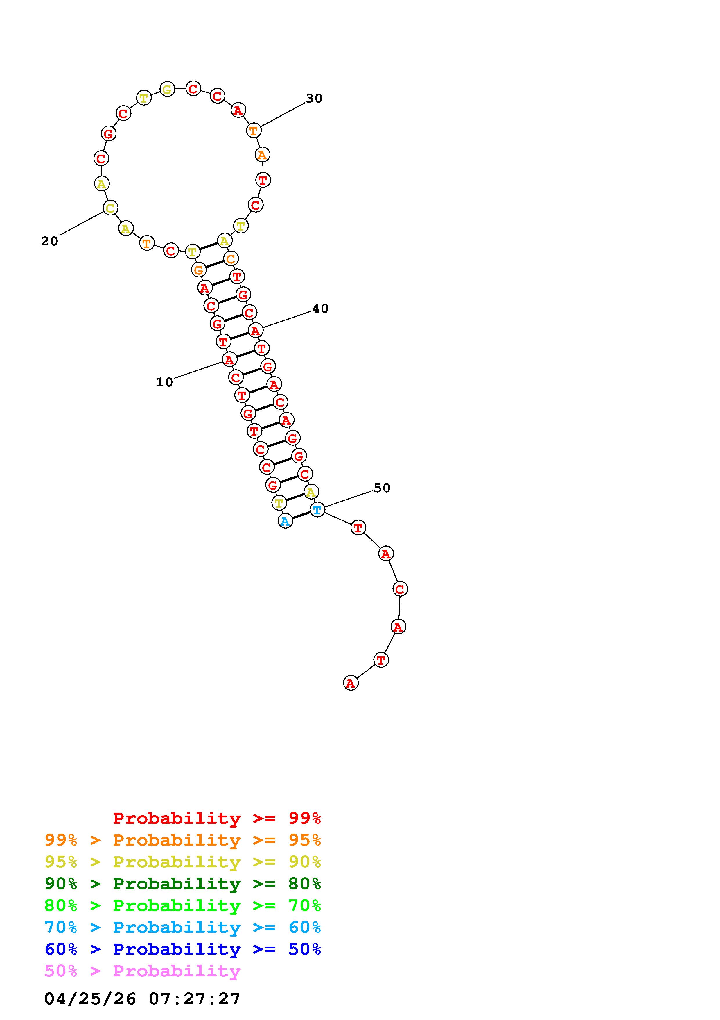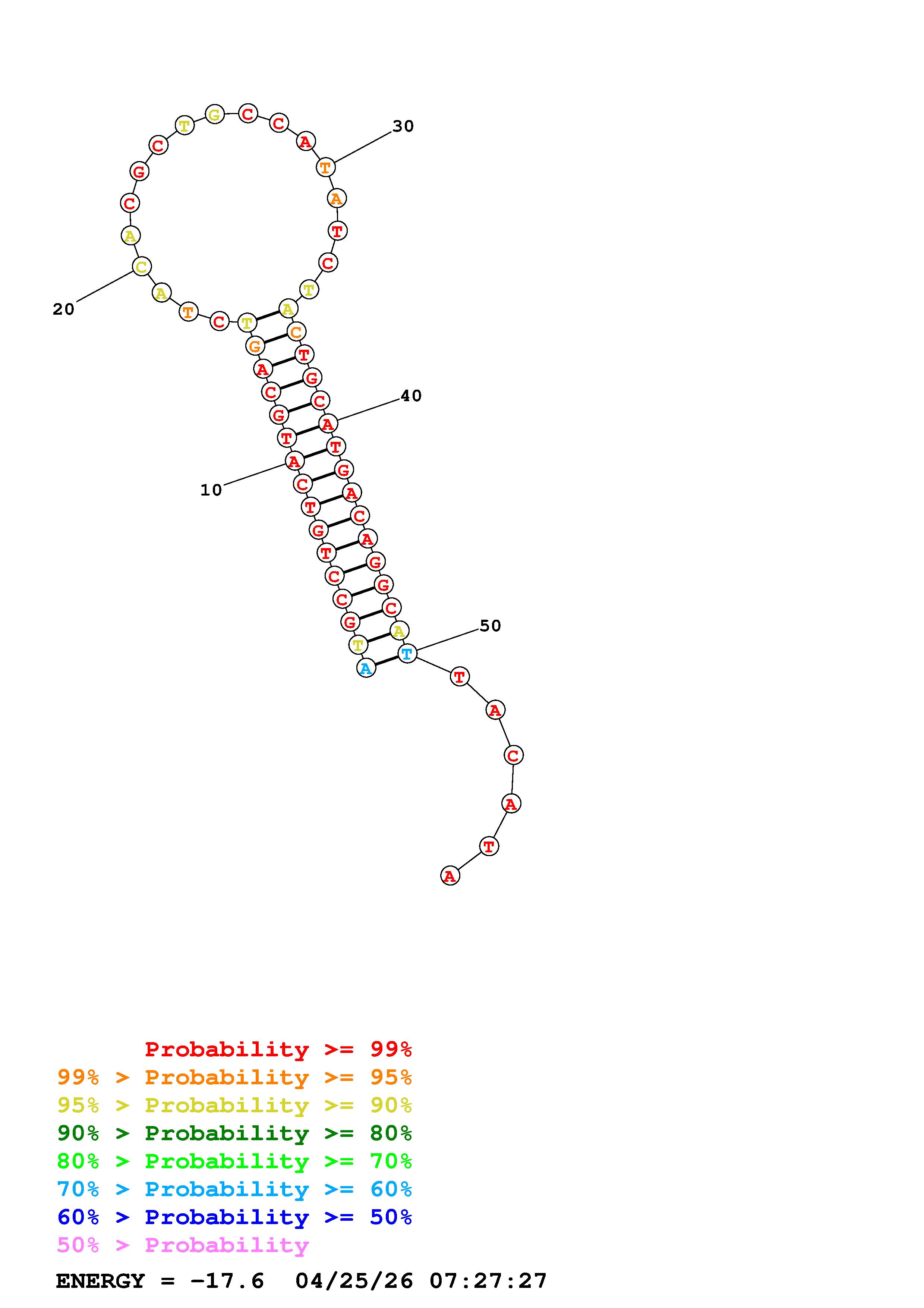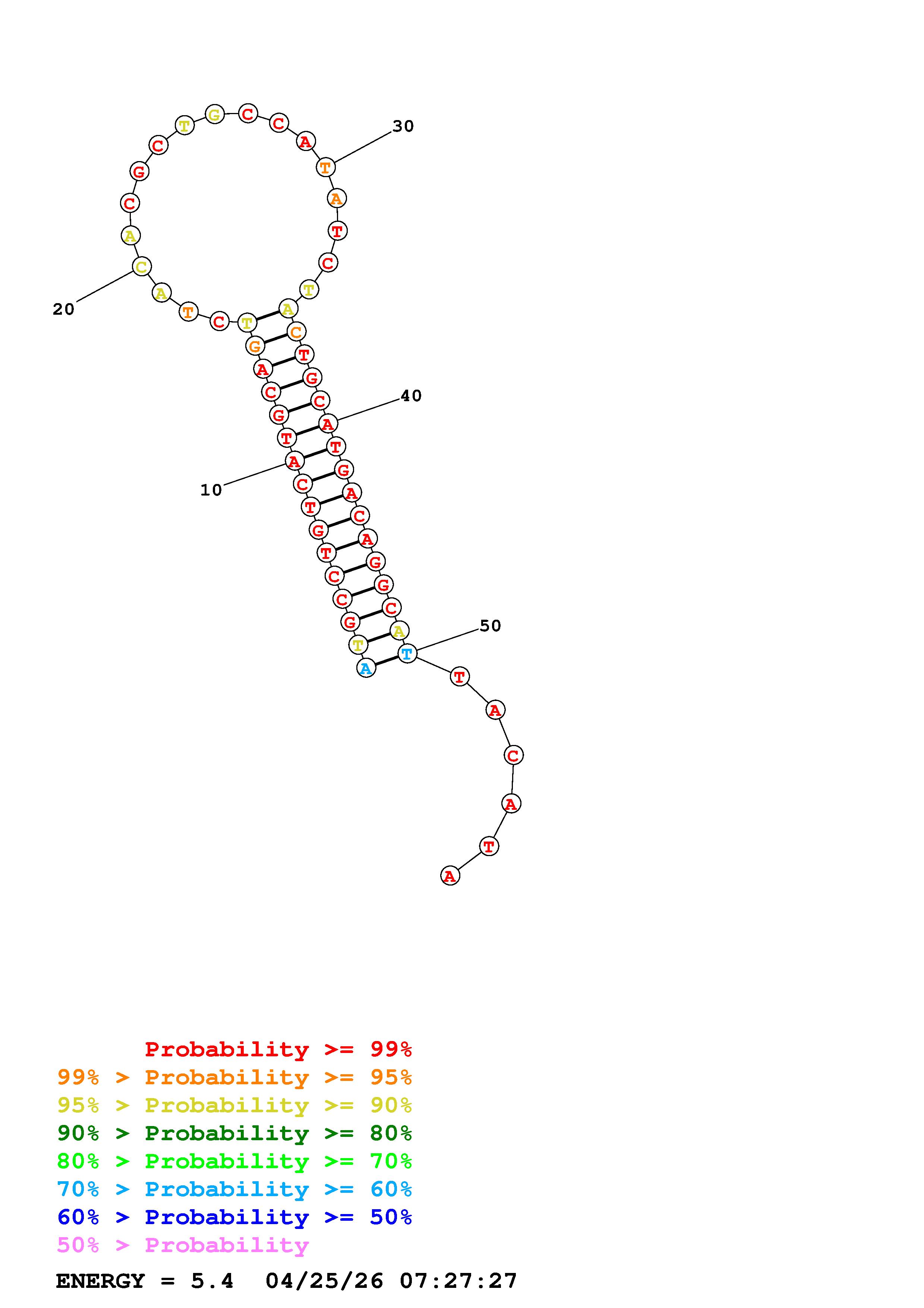 Fold Predict1.fasta Fold.ct --DNA --loop 30 --maximum 20 --percent 10 --temperature 310.15 --window 3