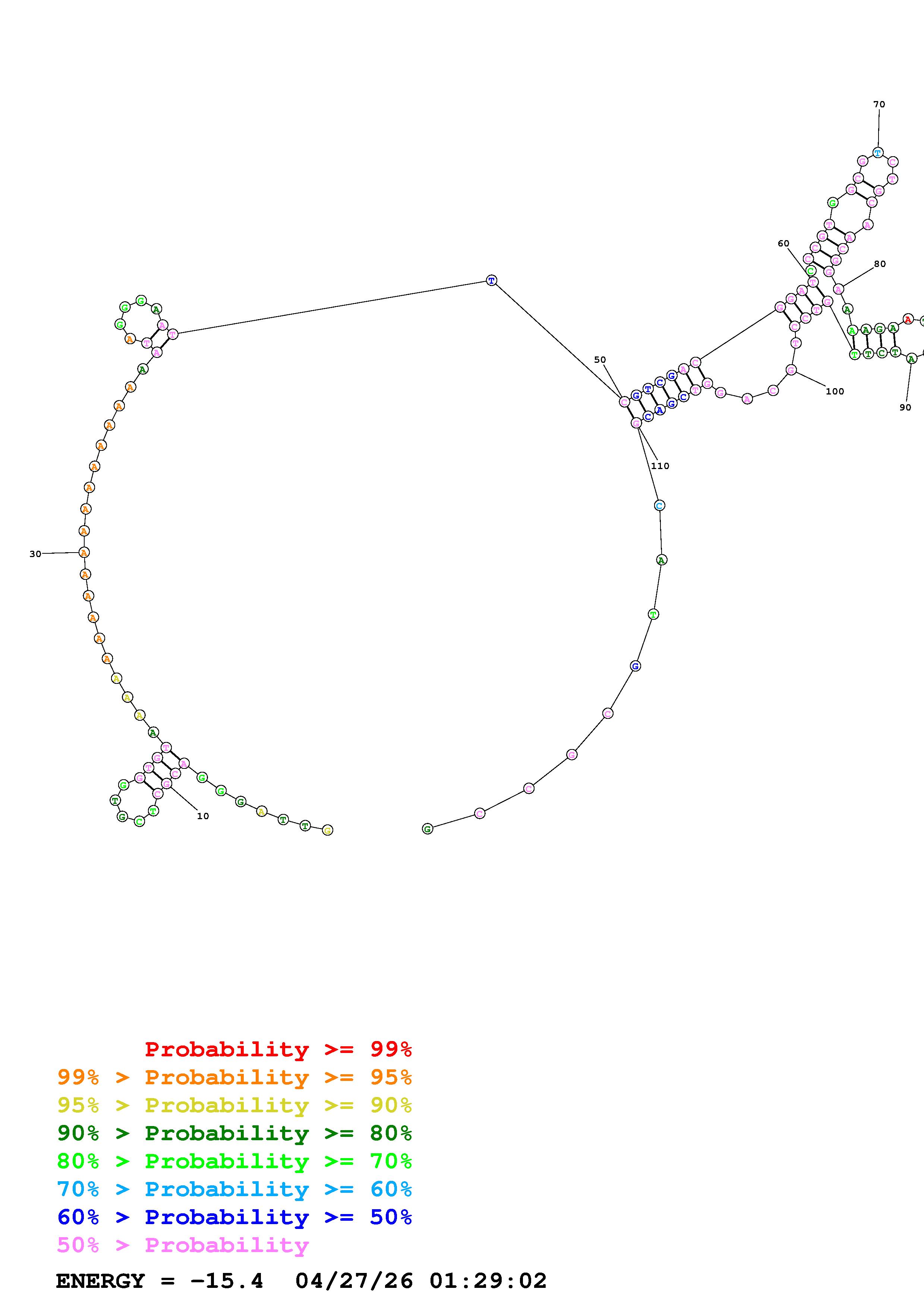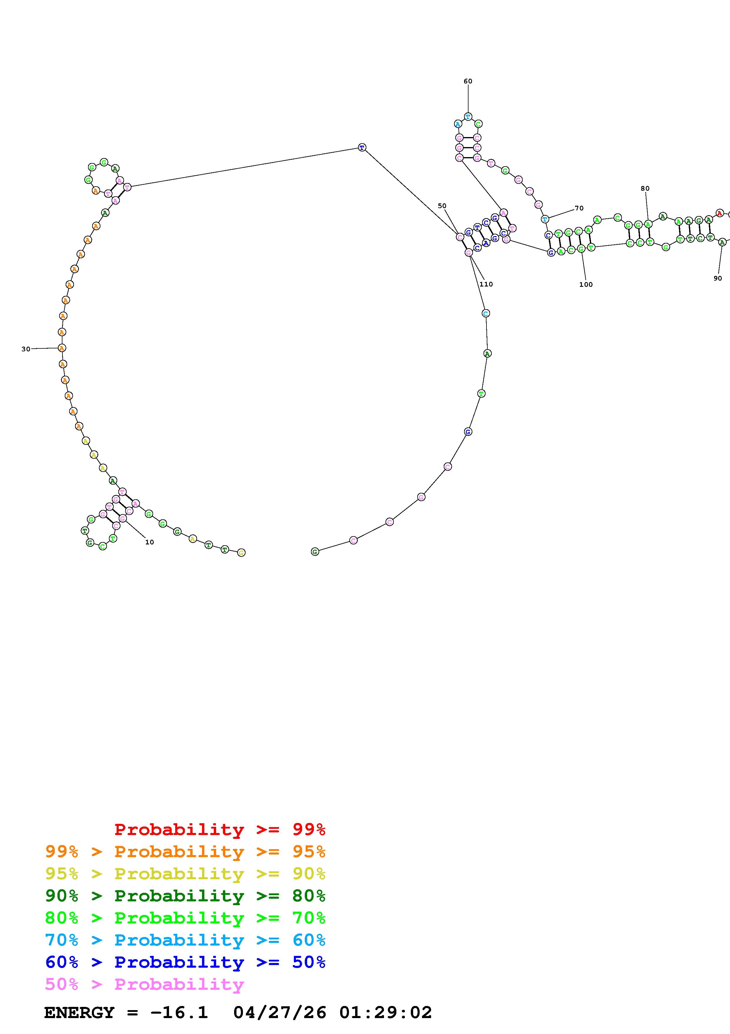 Fold Predict1.fasta Fold.ct --DNA --loop 30 --maximum 20 --percent 10 --temperature 310.15 --window 3