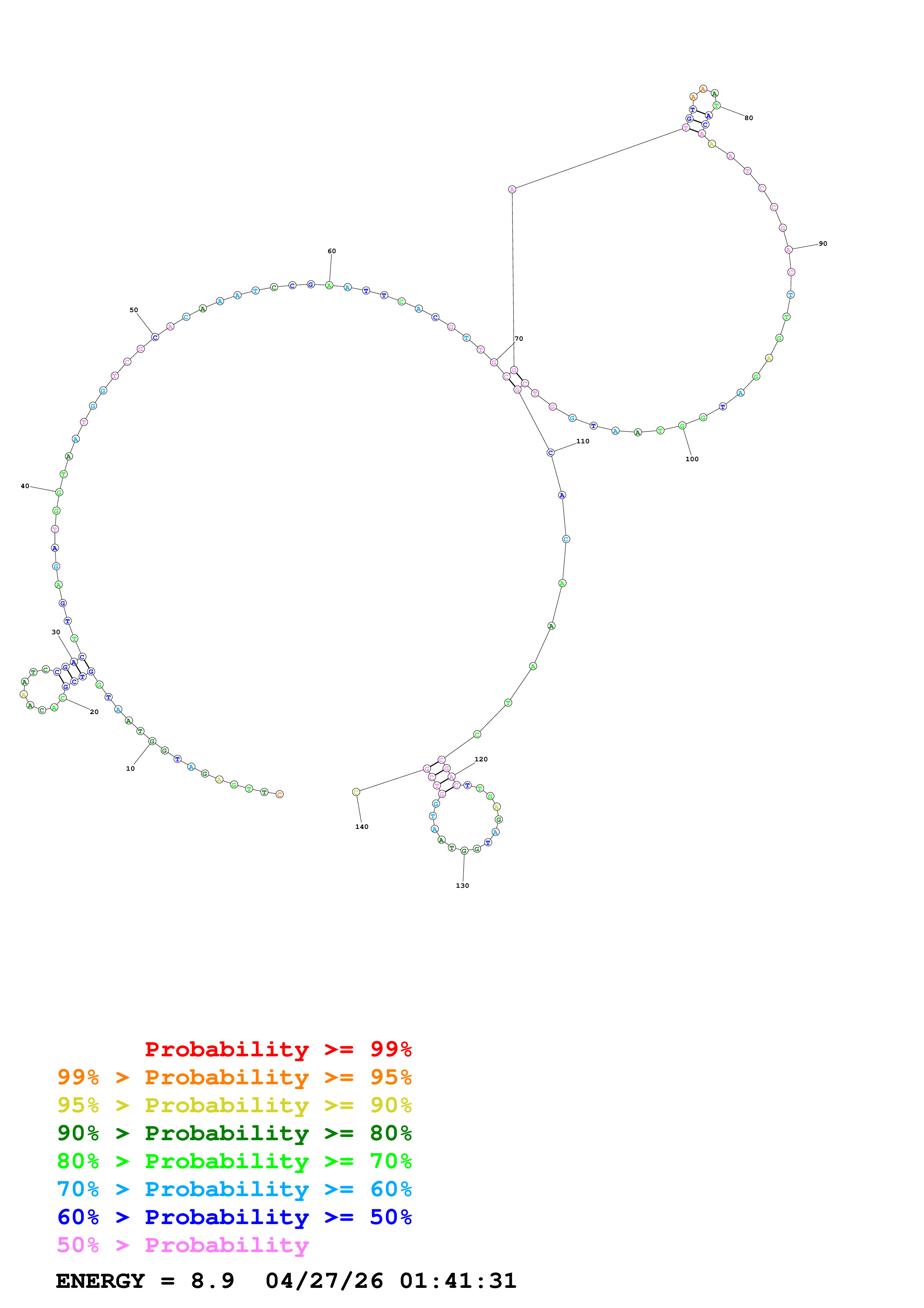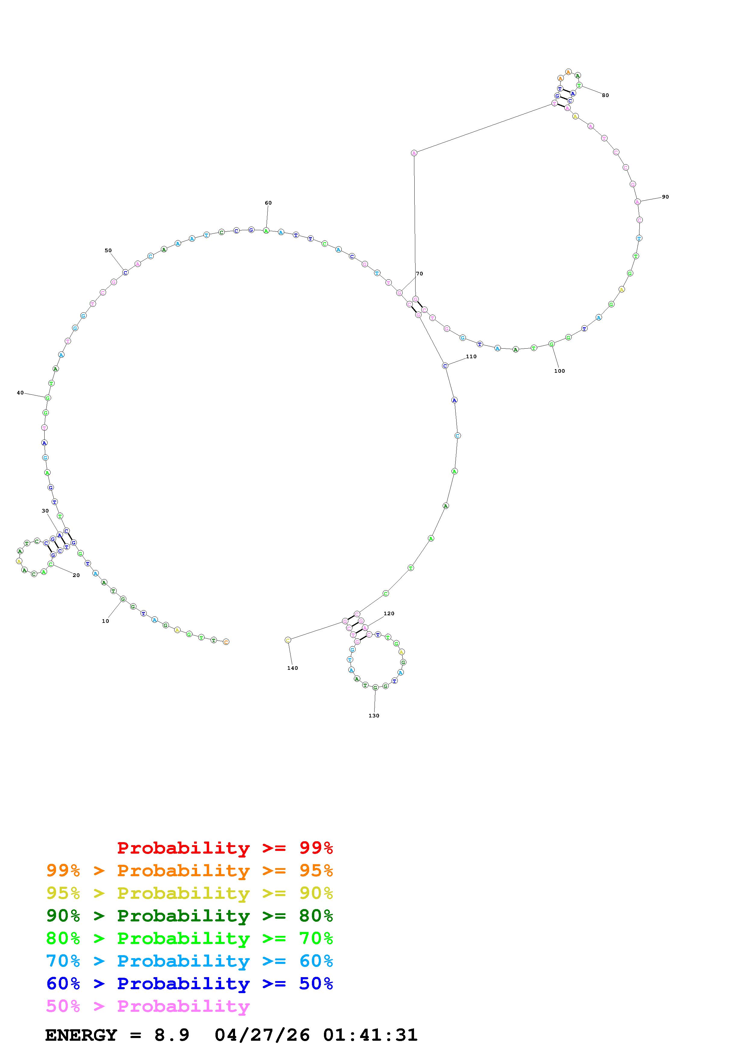 Fold Predict1.fasta Fold.ct --DNA --loop 30 --maximum 20 --percent 10 --temperature 310.15 --window 3