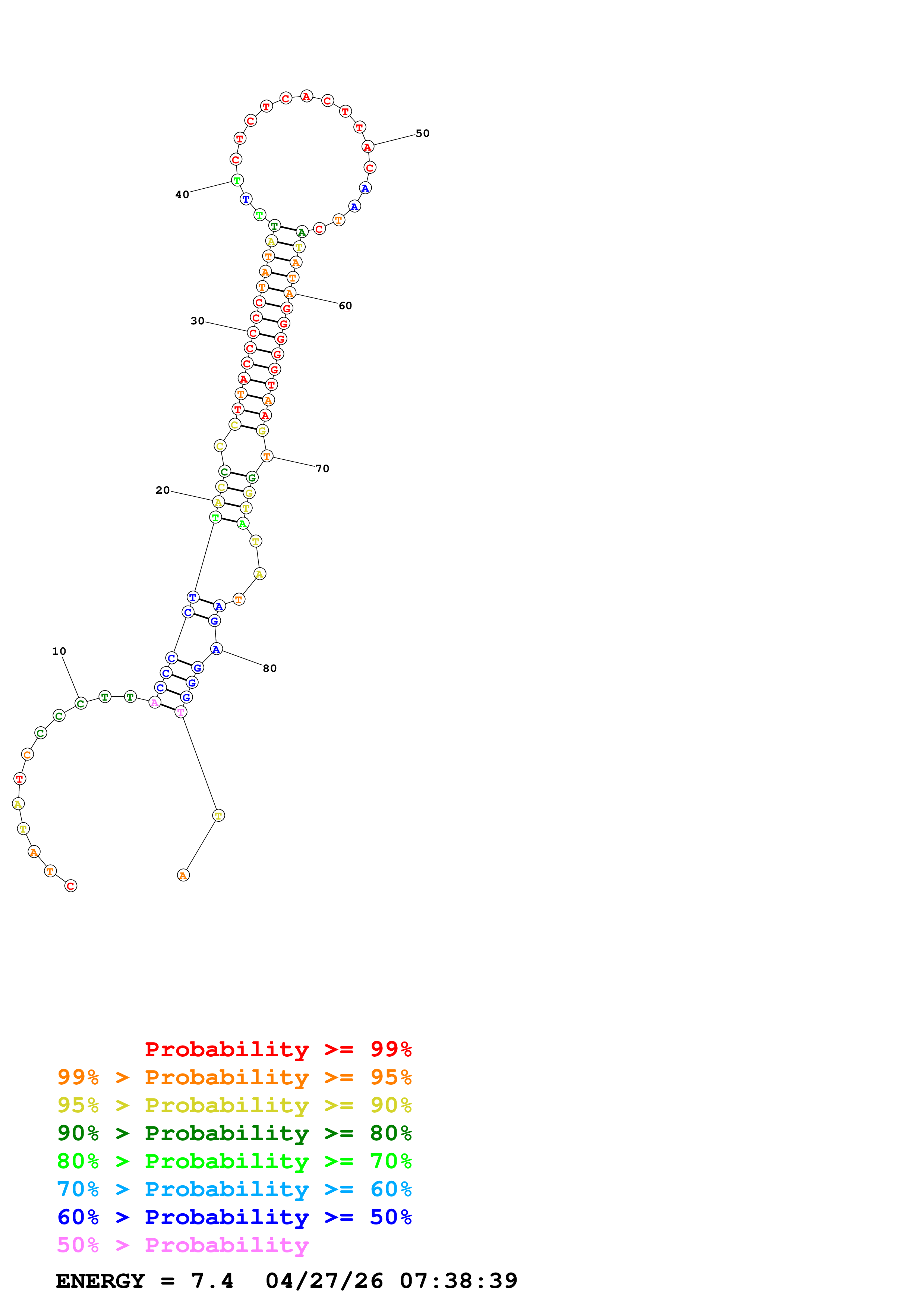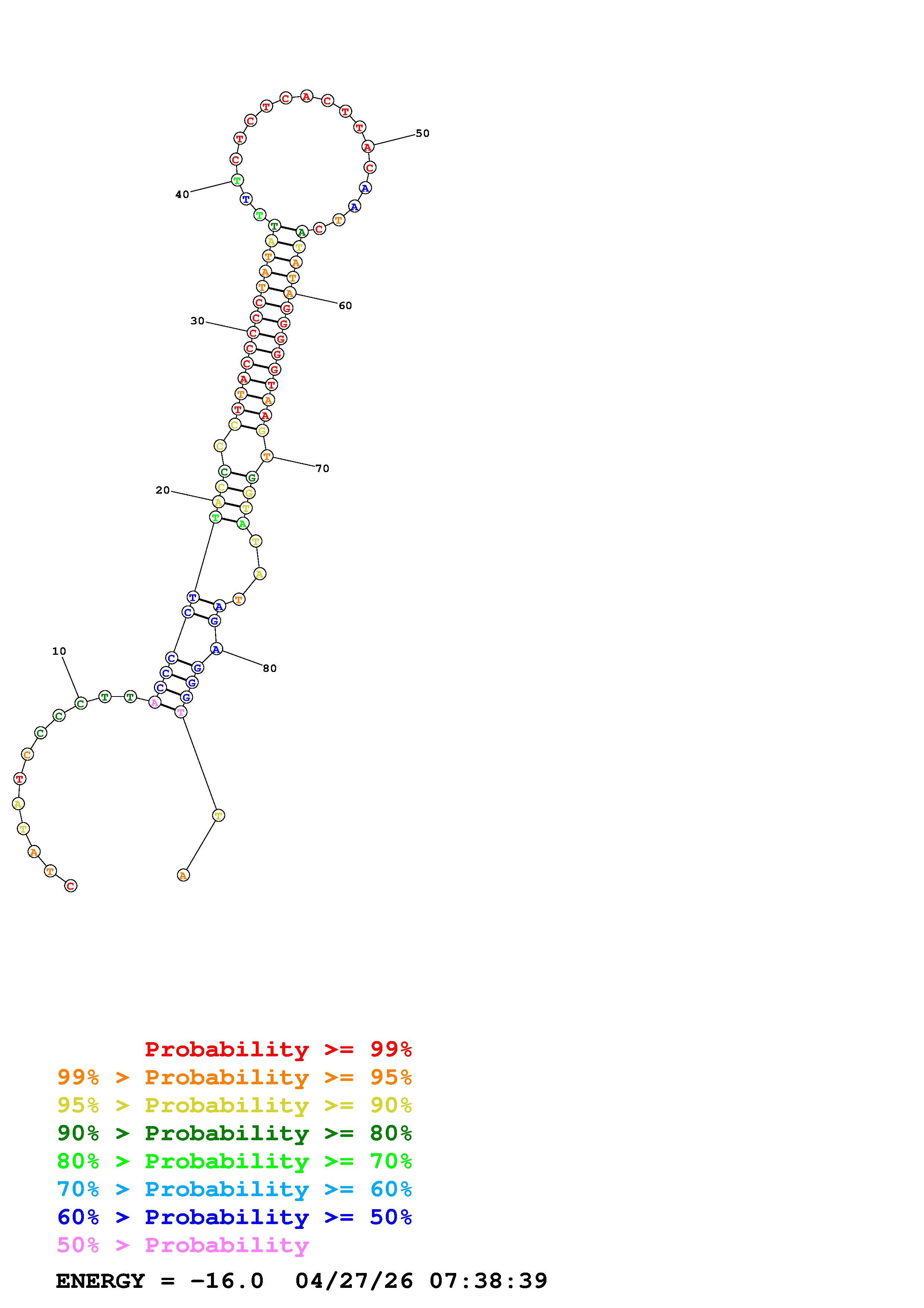 Fold Predict1.fasta Fold.ct --DNA --loop 30 --maximum 20 --percent 10 --temperature 310.15 --window 3
