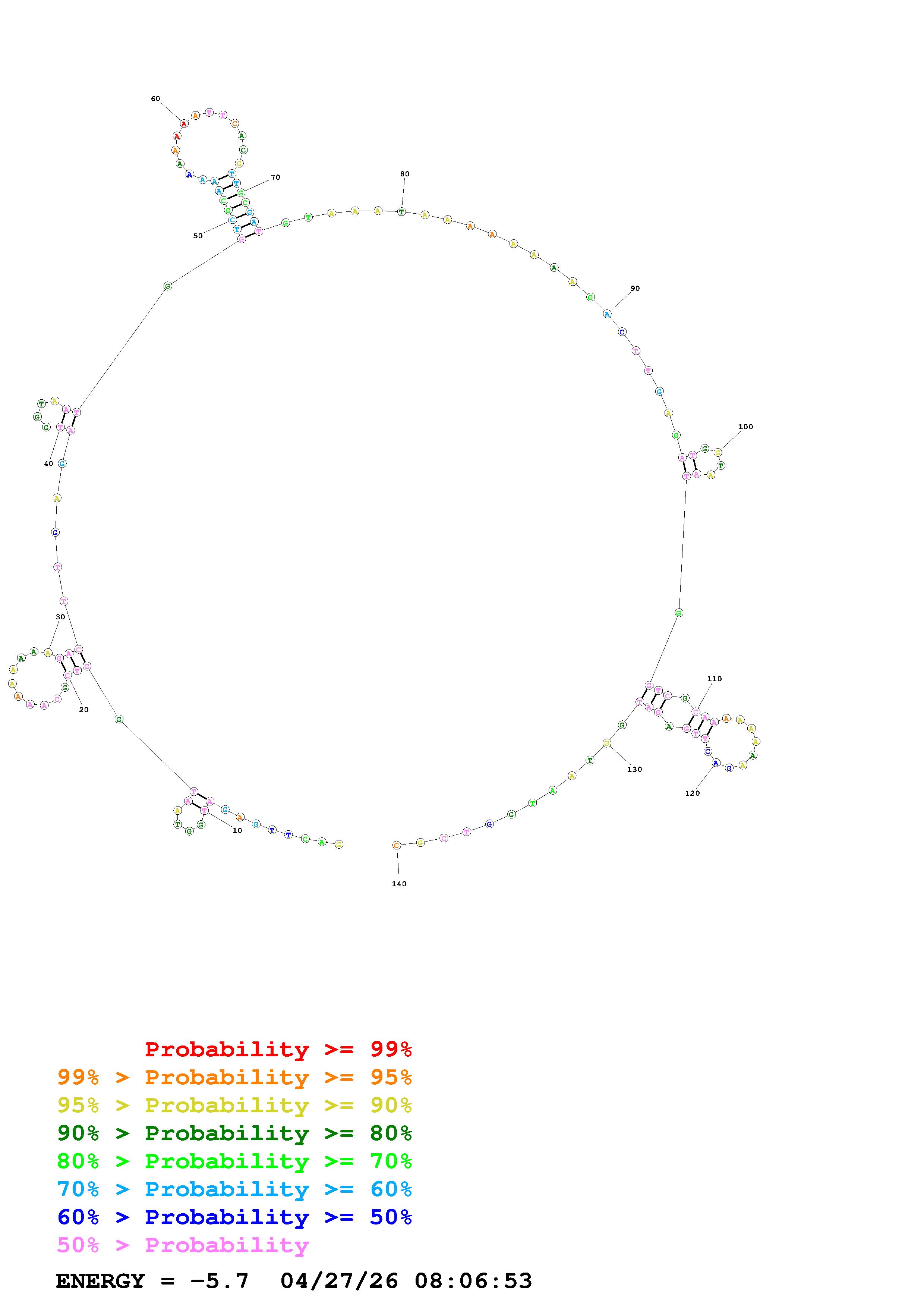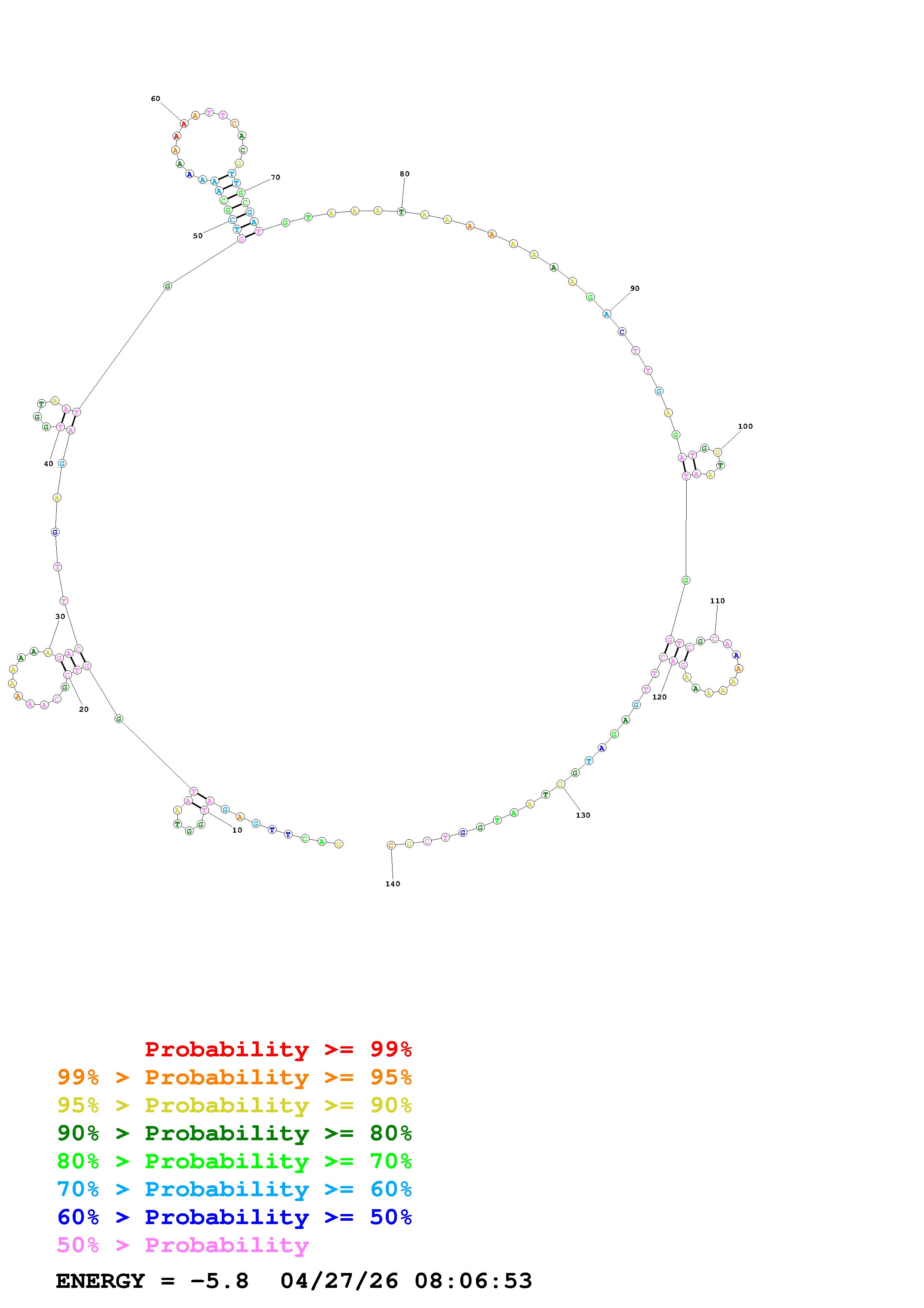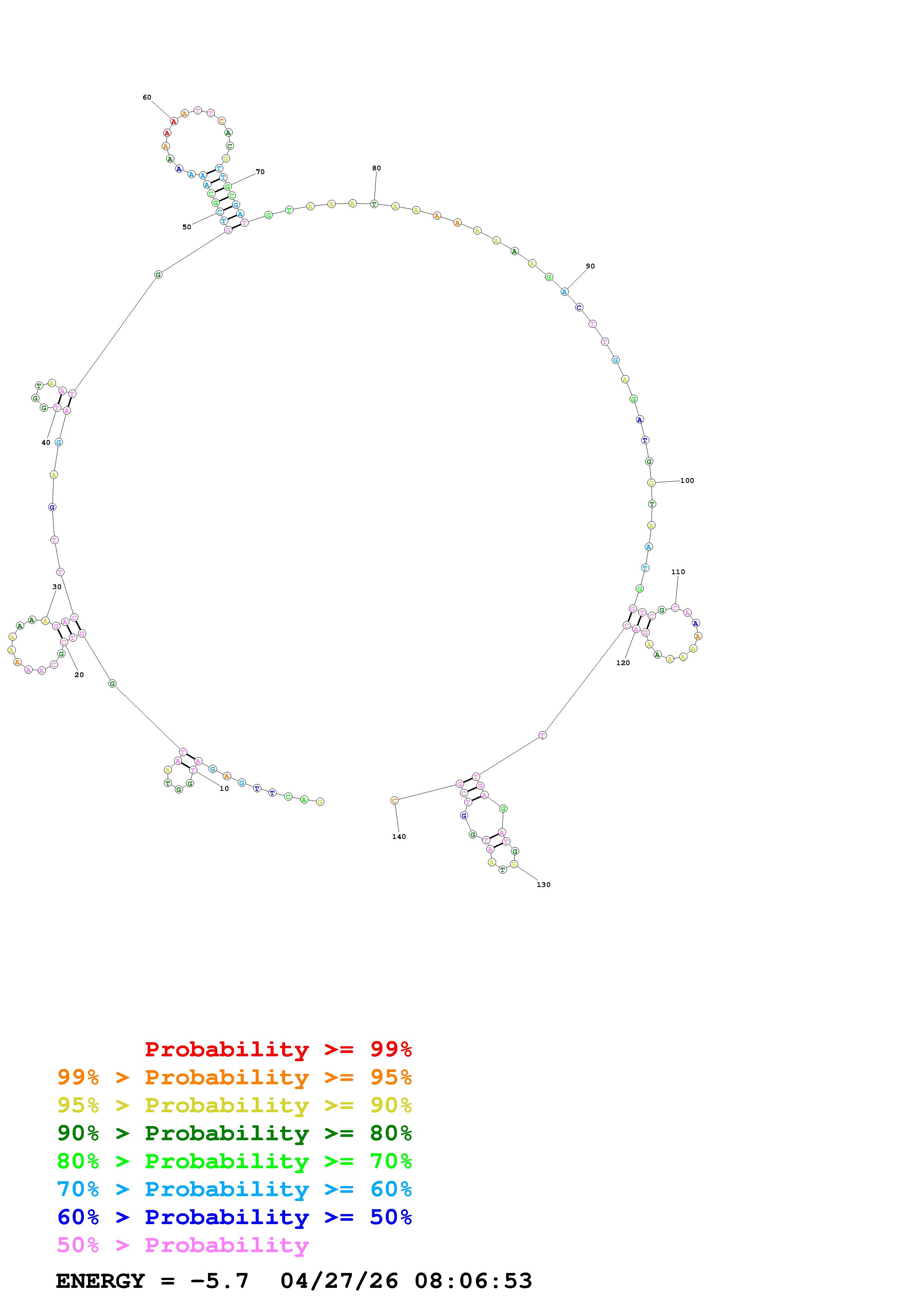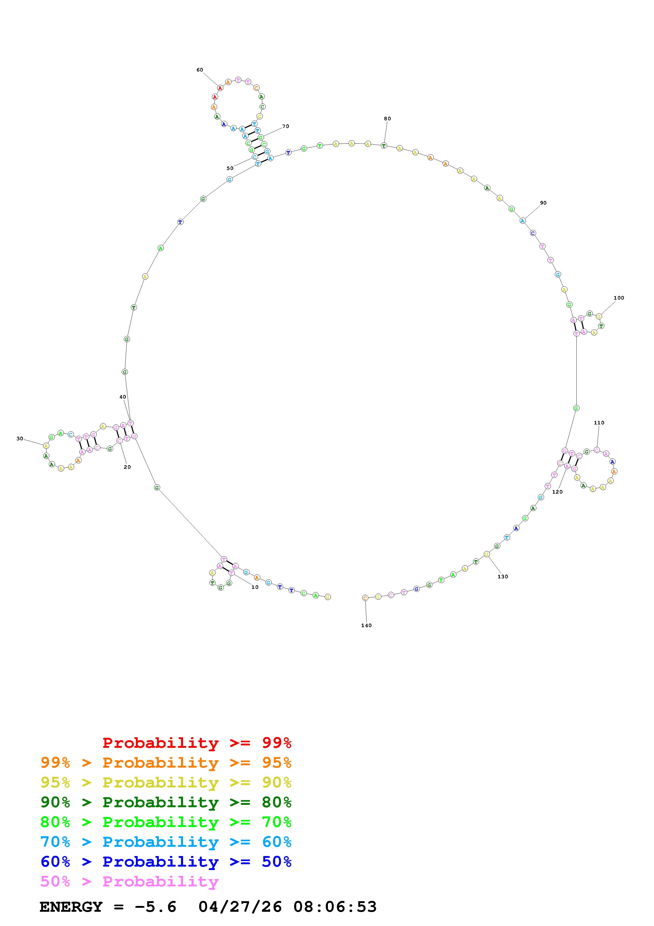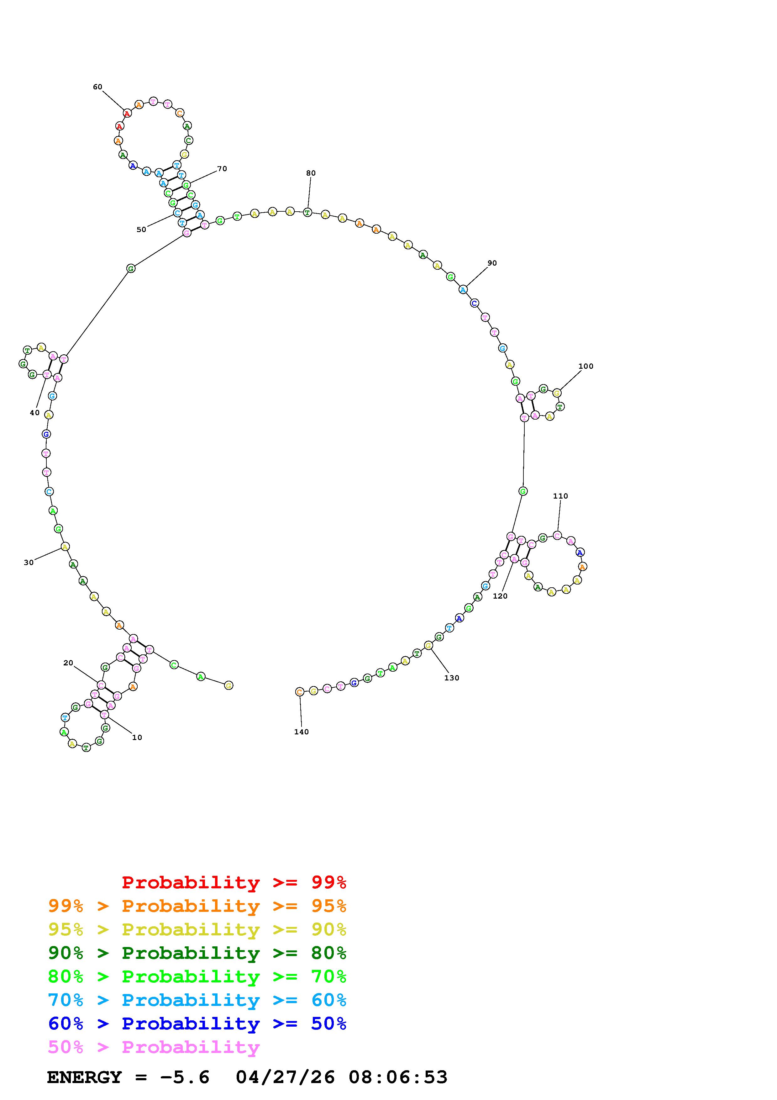 Fold Predict1.fasta Fold.ct --DNA --loop 30 --maximum 20 --percent 10 --temperature 310.15 --window 3