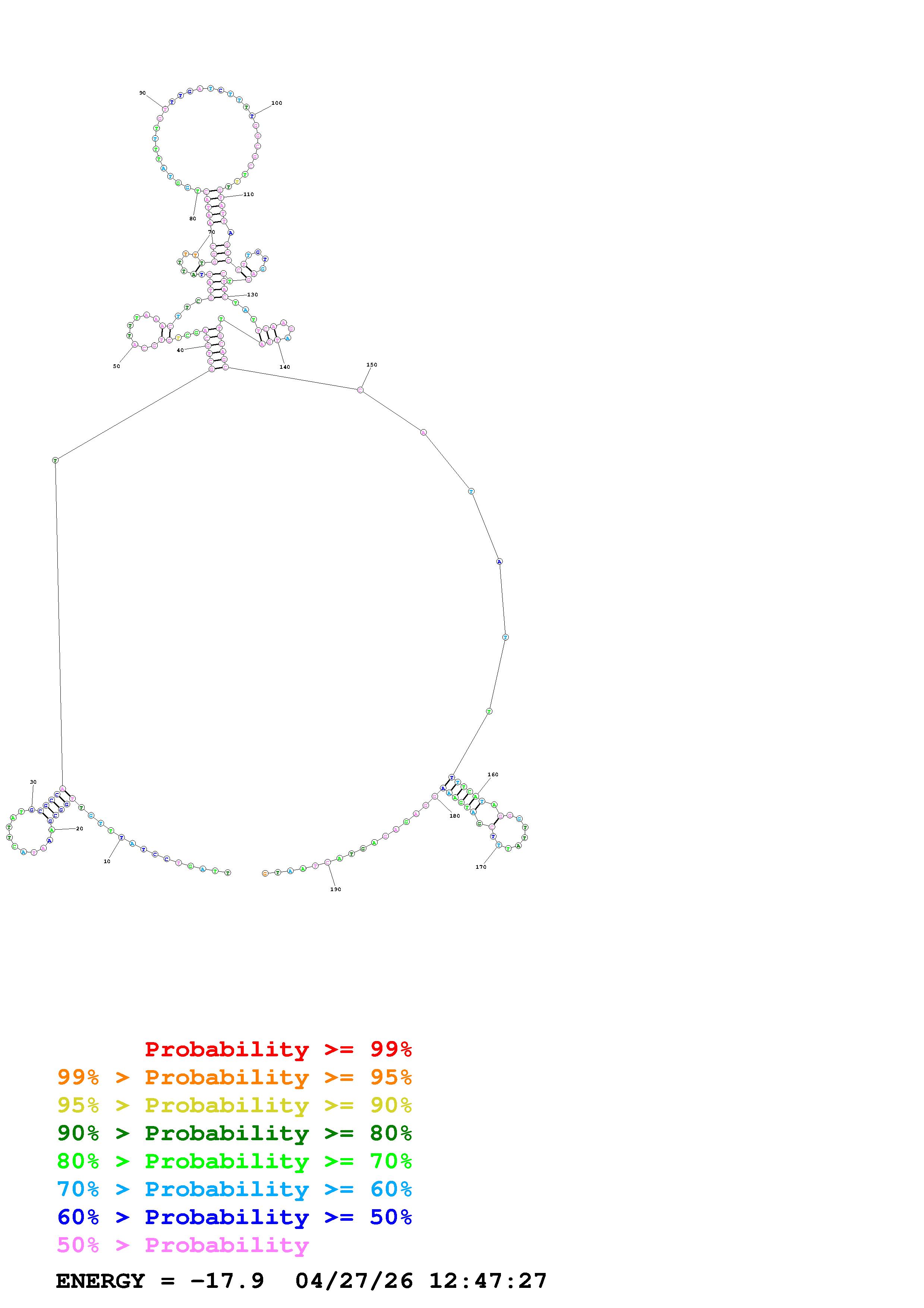 Fold Predict1.fasta Fold.ct --DNA --loop 30 --maximum 20 --percent 10 --temperature 310.15 --window 3