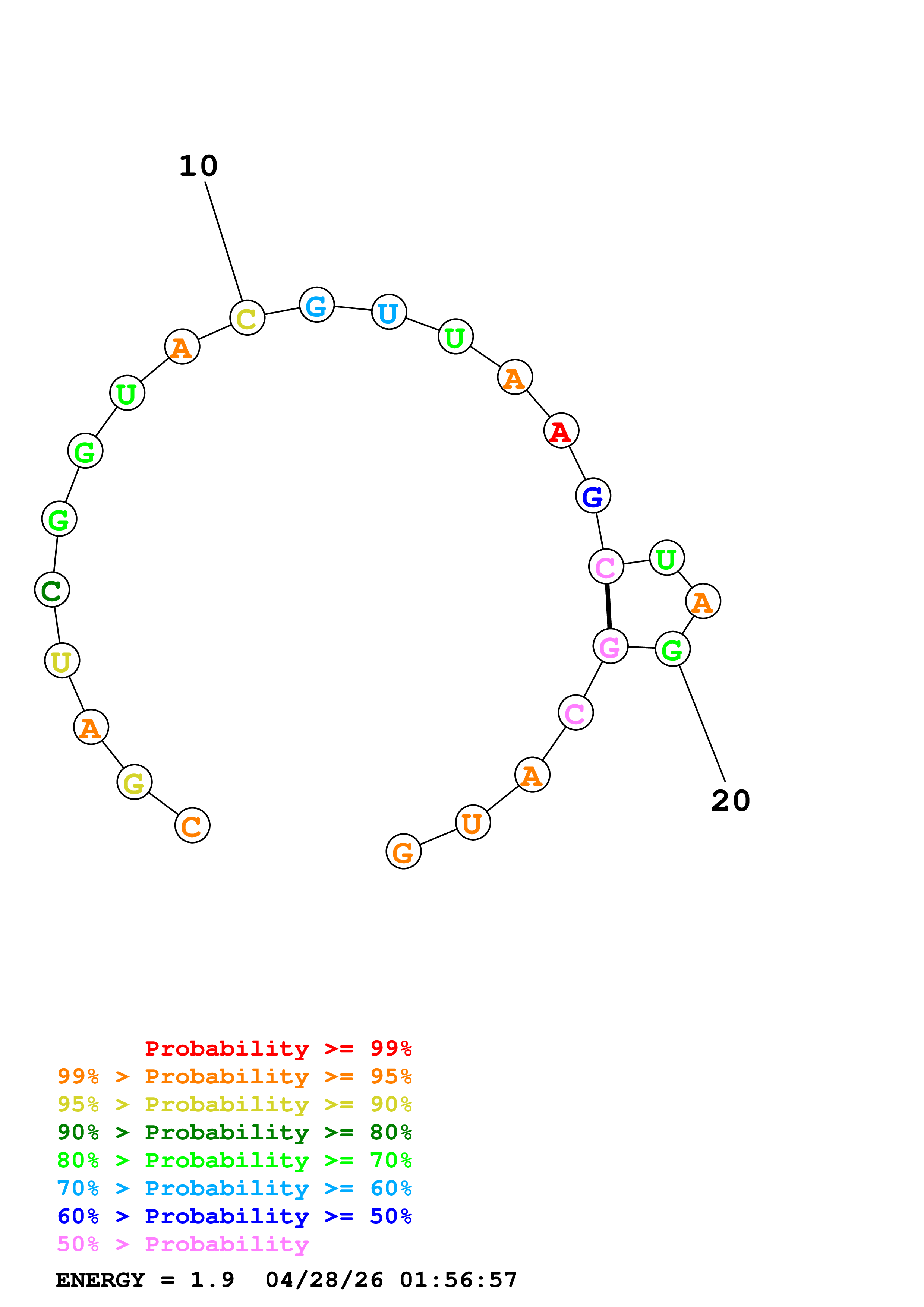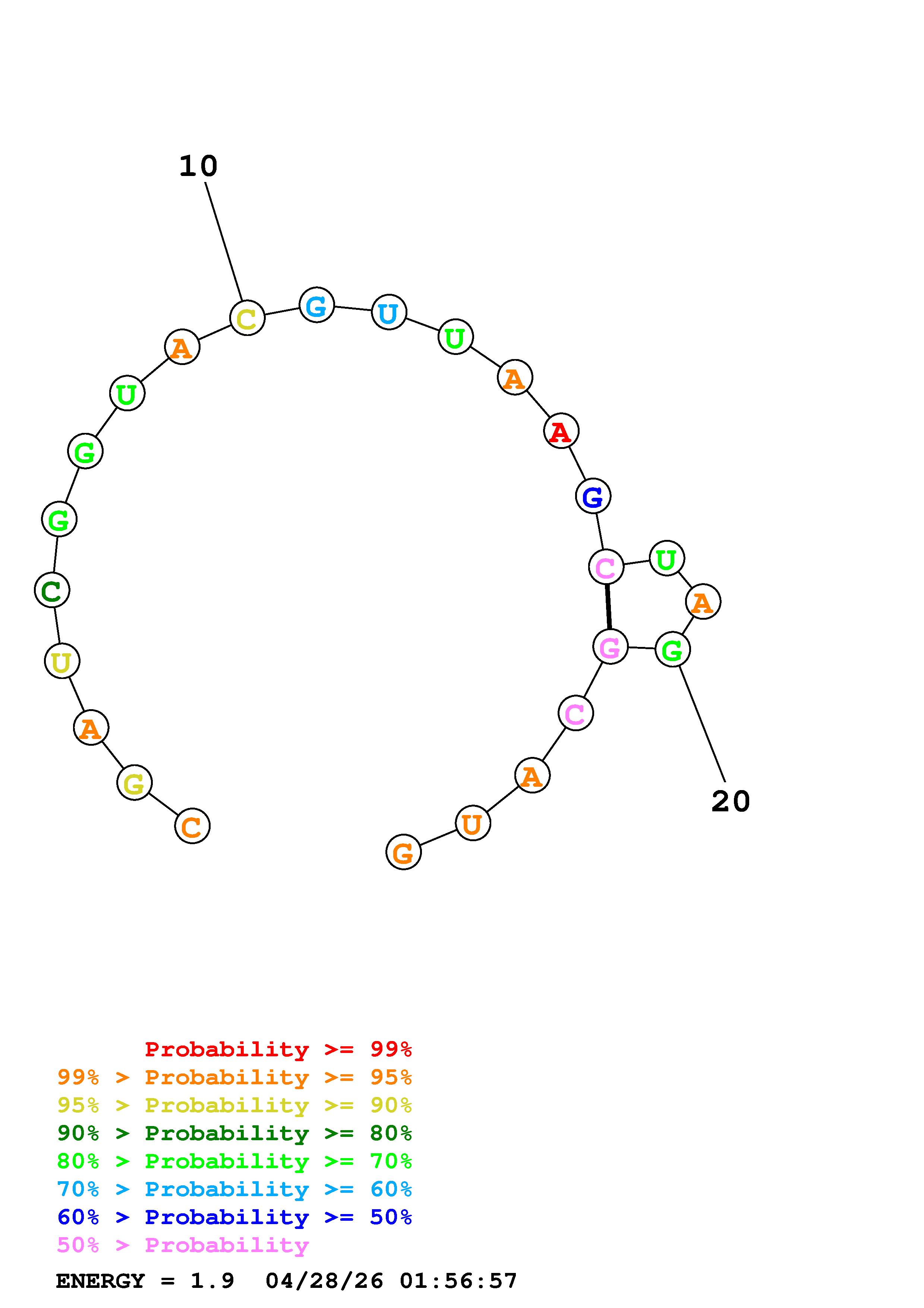 (Generate a structure or structures composed of highly probable base pairs. This is an alternative method for structure prediction that may have higher fidelity in structure prediction.)