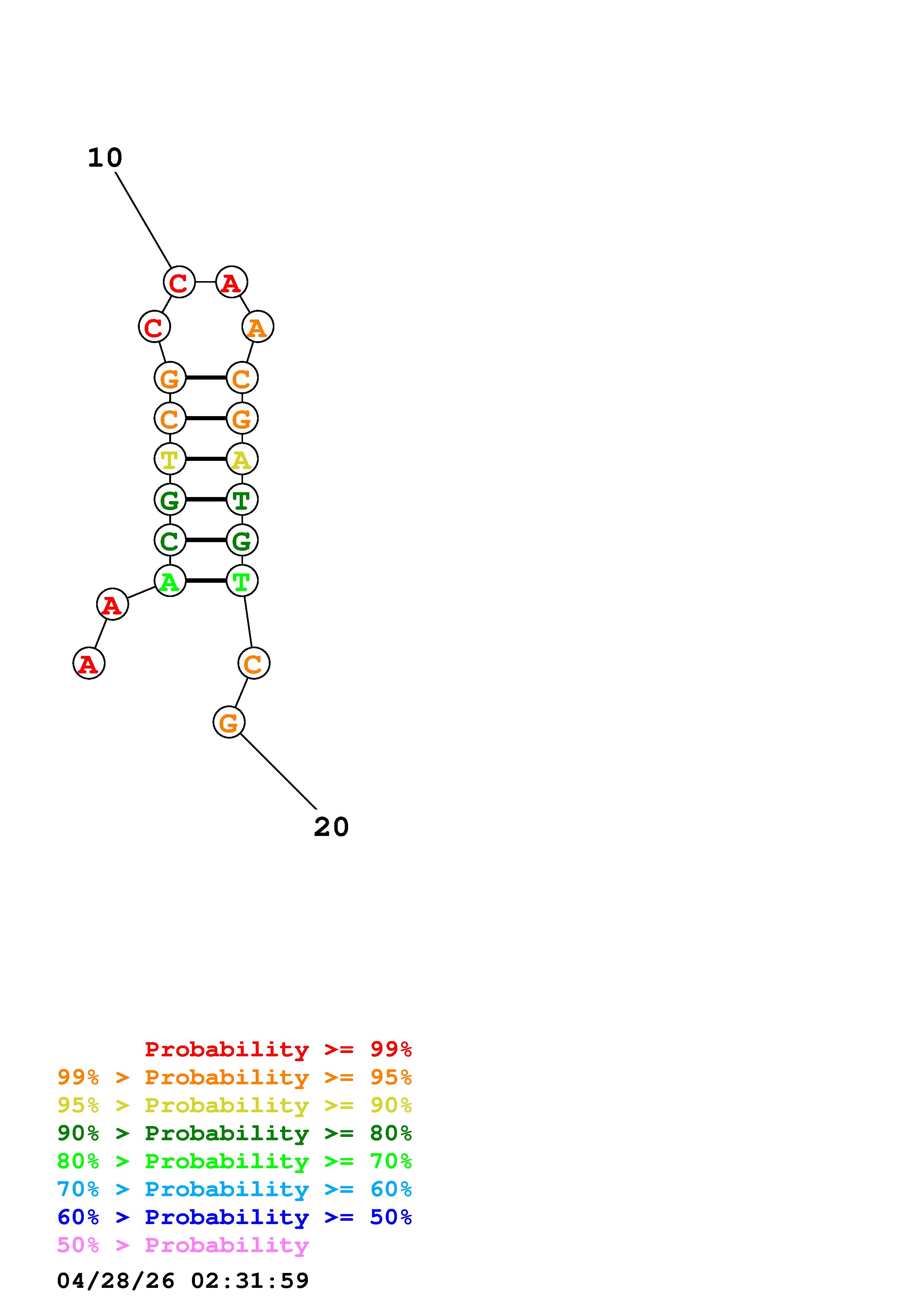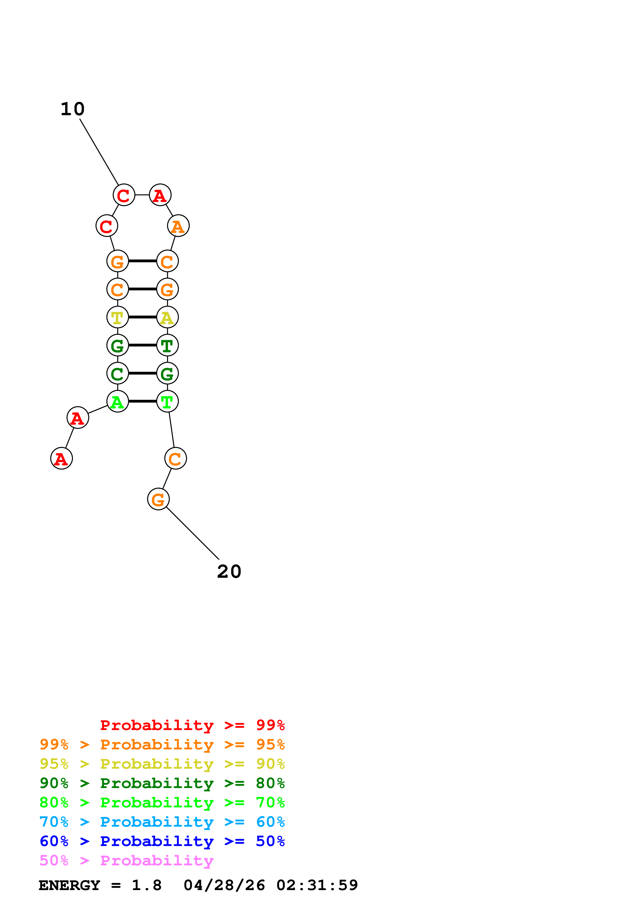 Fold Predict1.fasta Fold.ct --DNA --loop 30 --maximum 20 --percent 10 --temperature 310.15 --window 3