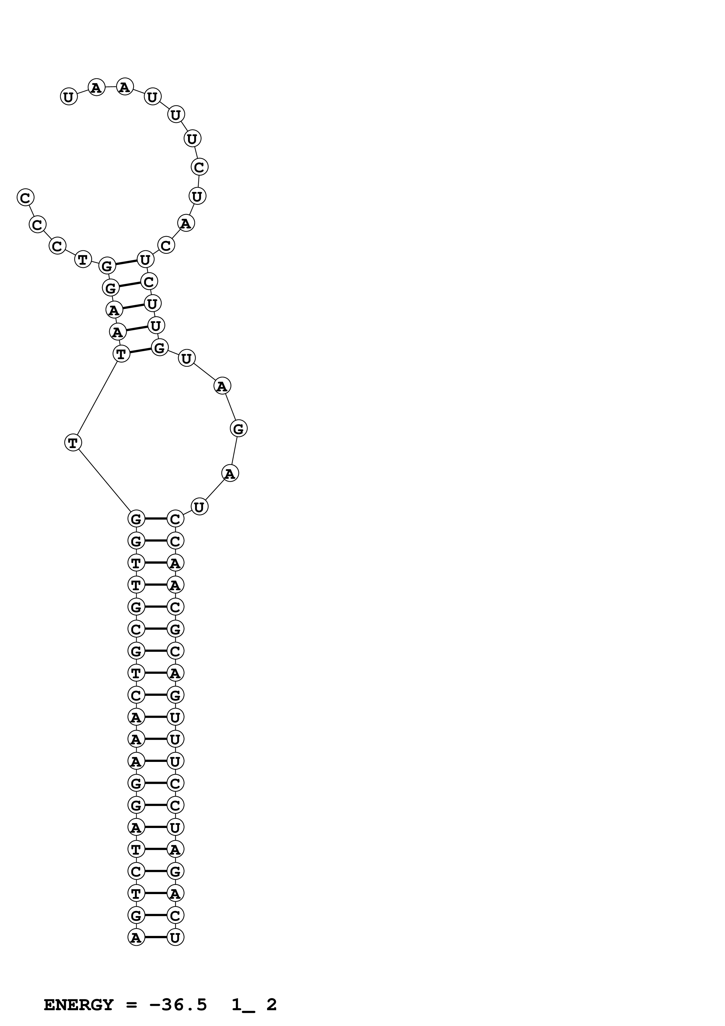DuplexFold PredictBi.fasta PredictBi2.fasta DuplexFold.ct --loop 30 --maximum 20 --percent 5 --temperature 310.15 --window 0