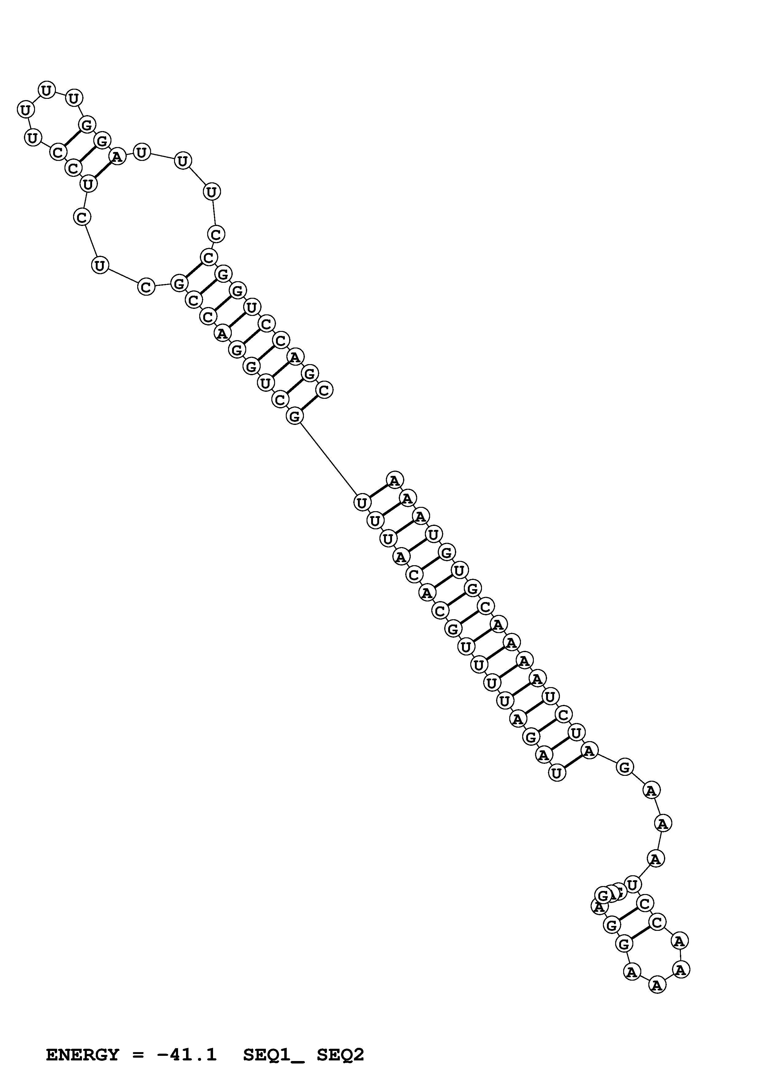 (Predict the lowest free energy structure for two interacting sequences, allowing intramolecular base pairs.)